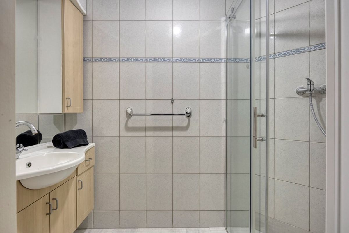 De badkamer ligt tussen de 2 slaapkamers en is voorzien van een douche en wastafelmeubel.