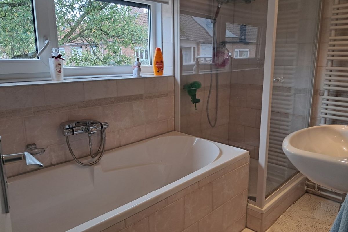 Deze verdieping is ingedeeld met een overloop, 3 slaapkamers en badkamer. De goed onderhouden badkamer is ingericht met een ligbad, douchecabine en wastafel.