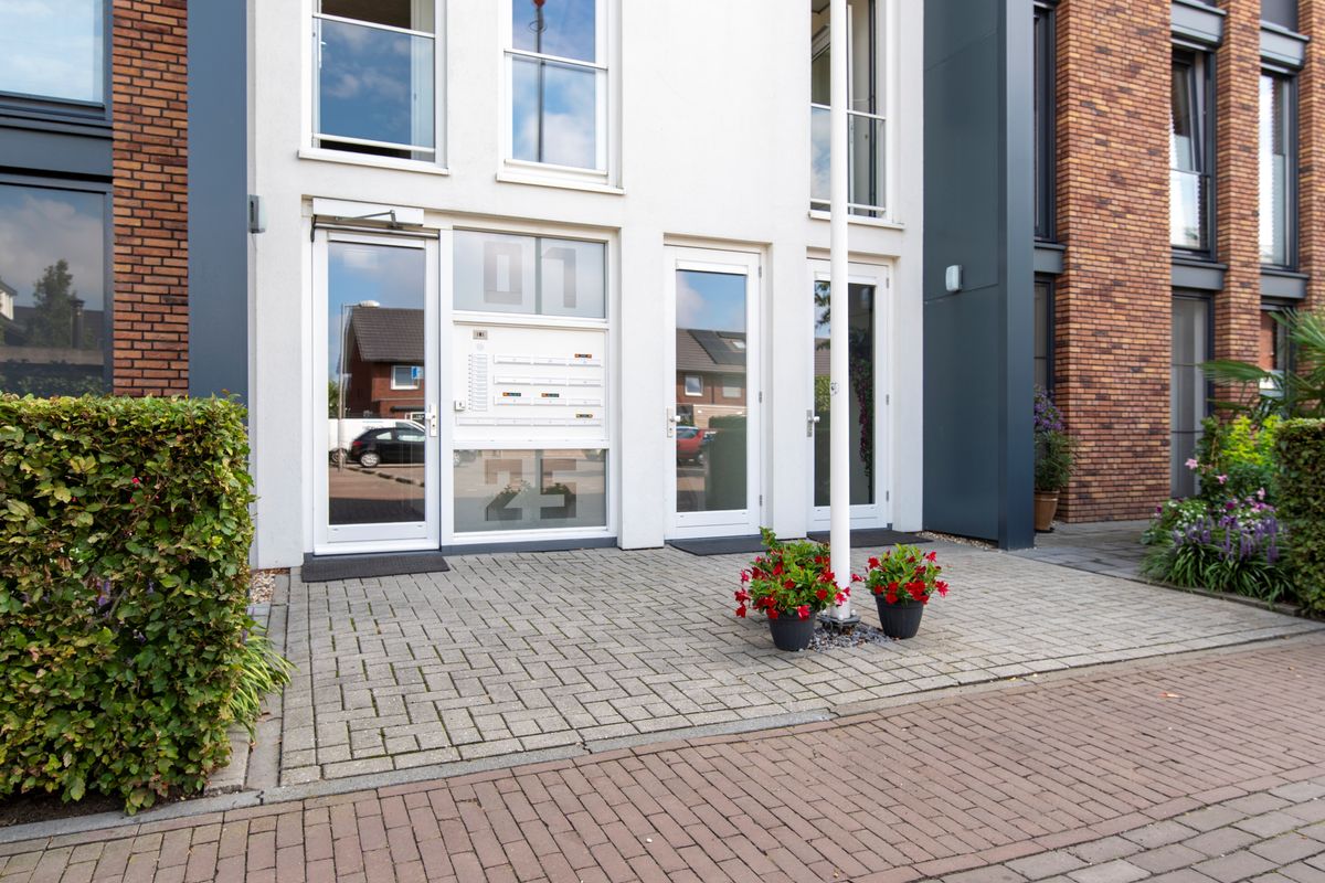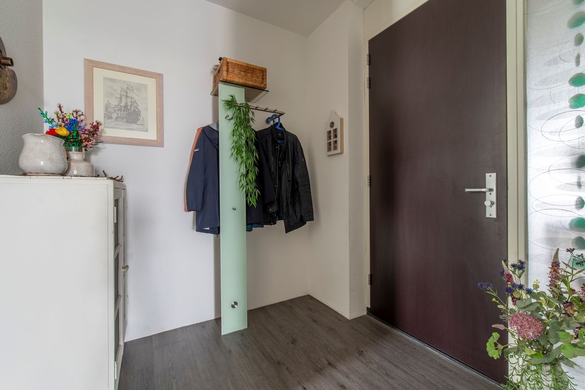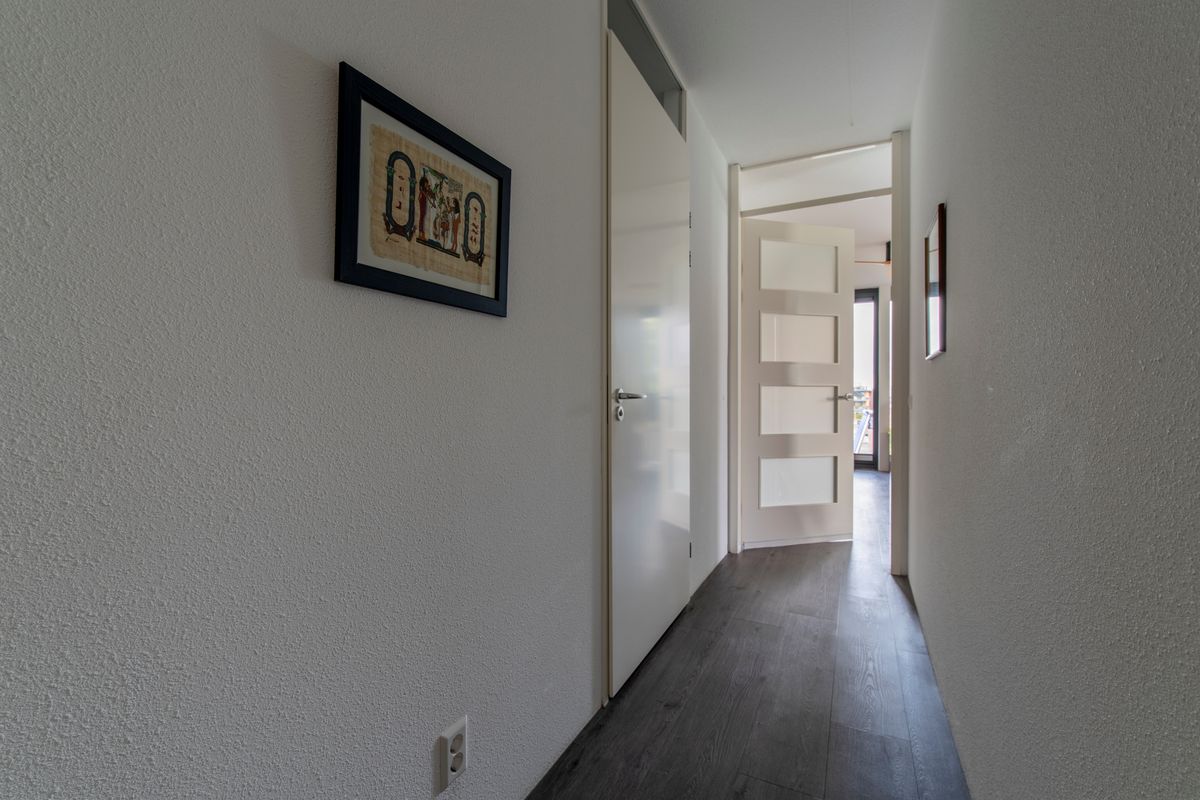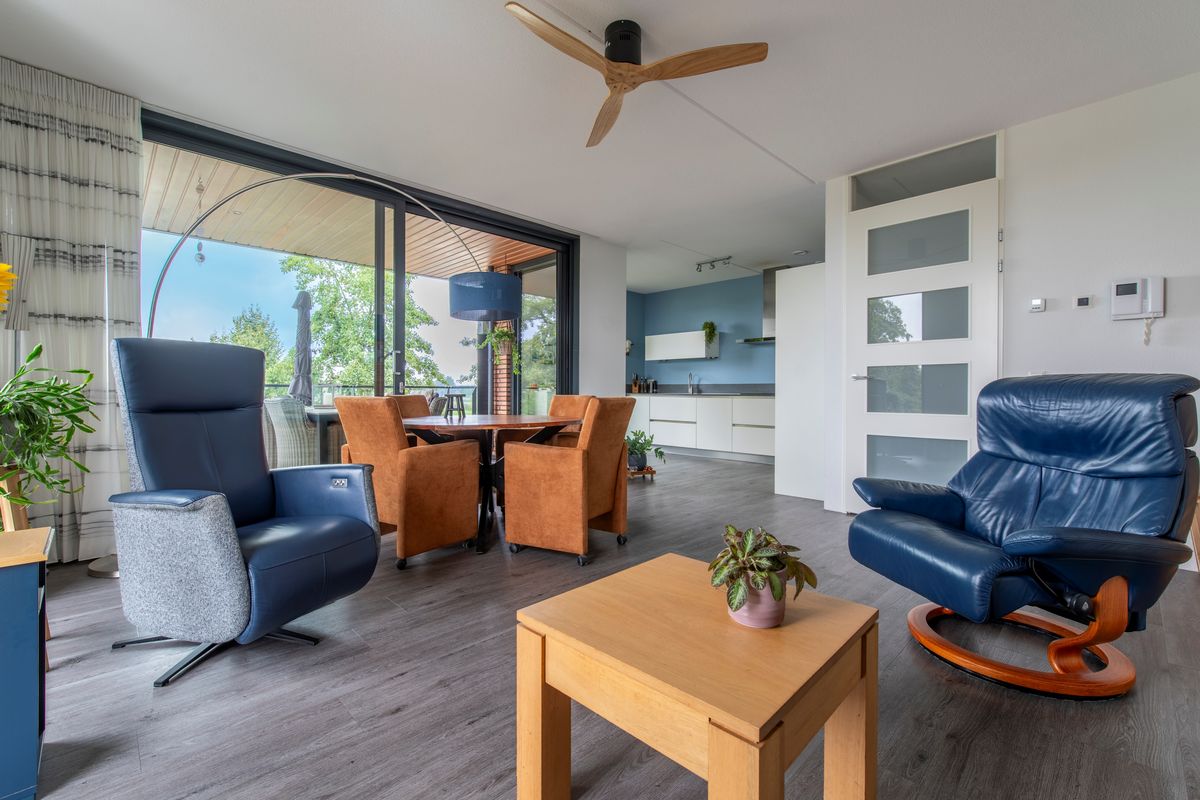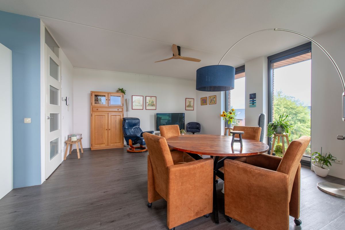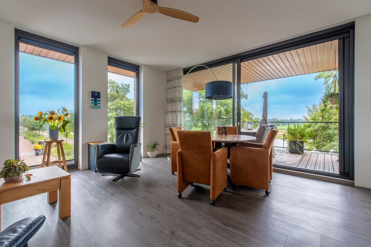 2e Verdieping: Vanuit de lift is het slechts enkele stappen tot aan de voordeur van huisnummer 17. De drempel eenmaal overgestapt lopen we als eerste de gang door. We komen aan in de woonkamer. En tja, wat valt hier nog te zeggen met zo'n uitzicht over een natuurreservaat en landerijen. Maar er is meer, want ook is er vanuit de woonkamer een leuk uitzicht over de directe omgeving. Een schuifpui geeft toegang tot het terras. Windschermen zorgen dat u hier al van vroeg tot laat in het seizoen kunt genieten. De half-open keuken heeft een hoekopgestelde keuken met lichte fronten. Aan inbouwapparatuur is er een inductiekookplaat, een afzuigkap (2025), een combi-oven, een koelkast, een afzonderlijke vriezer en een vaatwasser. Weer terug in de gang zijn er deuren naar twee slaapkamers waarvan de hoofdslaapkamer een vaste kastenwand heeft. Beide slaapkamers beschikken over draai-/kiepramen. Verder geeft de hal toegang tot de bijkeuken, het toilet met een fonteintje en de badkamer. In de bijkeuken kan de wasmachine worden aangesloten, de badkamer heeft een inloopdouche, een ligbad, een wastafel en een design radiator.