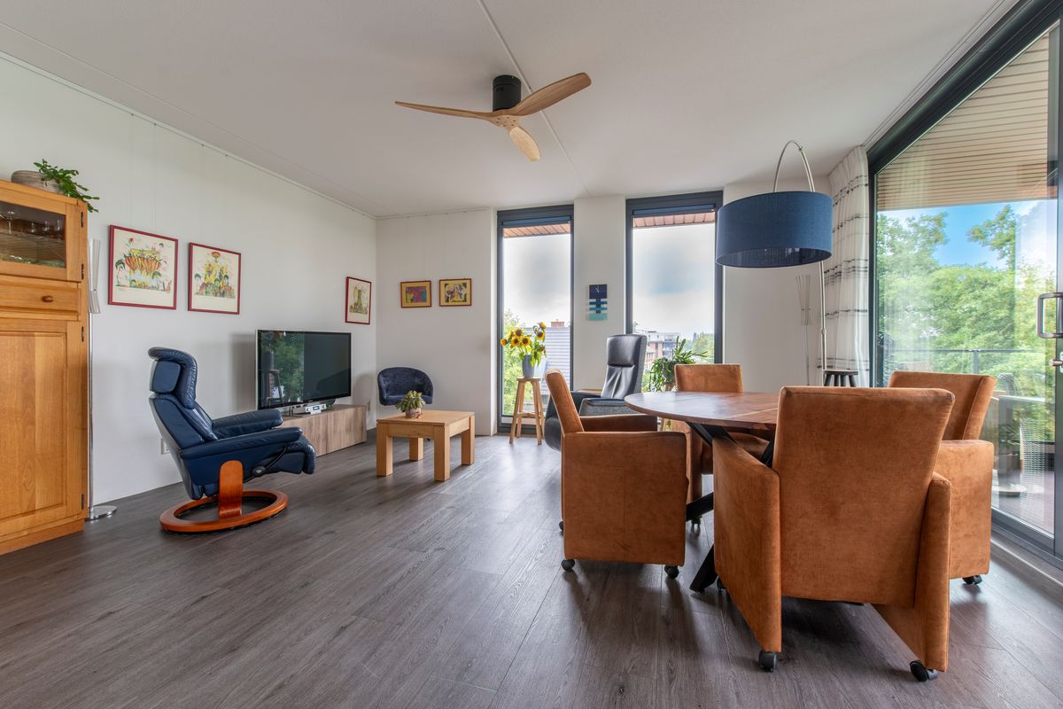 Bij binnenkomst in het appartement valt direct op hoe licht alle vertrekken zijn. Dat is ook niet verwonderlijk met ramen die doorlopen tot op de vloer. De woonkamer heeft zelfs een immense schuifpui die volledig uit glas bestaat. Naast twee slaapkamers met goede afmetingen is er een neutrale keuken en badkamer. Kortom, als senior heeft u meer eigenlijk niet nodig en is dit de ideale uitvalsbasis voor wandel- en fietstochten in de omgeving maar ook voor het maken van stedentrips, verdere reizen en dergelijke. Bij terugkomst treft u het appartement aan zoals u het heeft achtergelaten en u kunt gewoon weer verder met genieten. Geloof ons maar, het wonen op zo'n locatie went nooit!