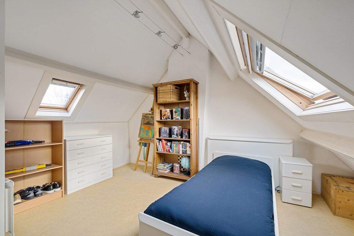 Via de vaste trap bereikt u de tweede verdieping. Op deze woonlaag vindt u een overloop, een ruime vijfde slaapkamer en meerdere bergingen. De slaapkamer is voorzien van dakramen en praktische bergruimte onder de schuine kap, wat zorgt voor een sfeervolle en functionele indeling. De extra bergingen maken deze verdieping bijzonder praktisch.