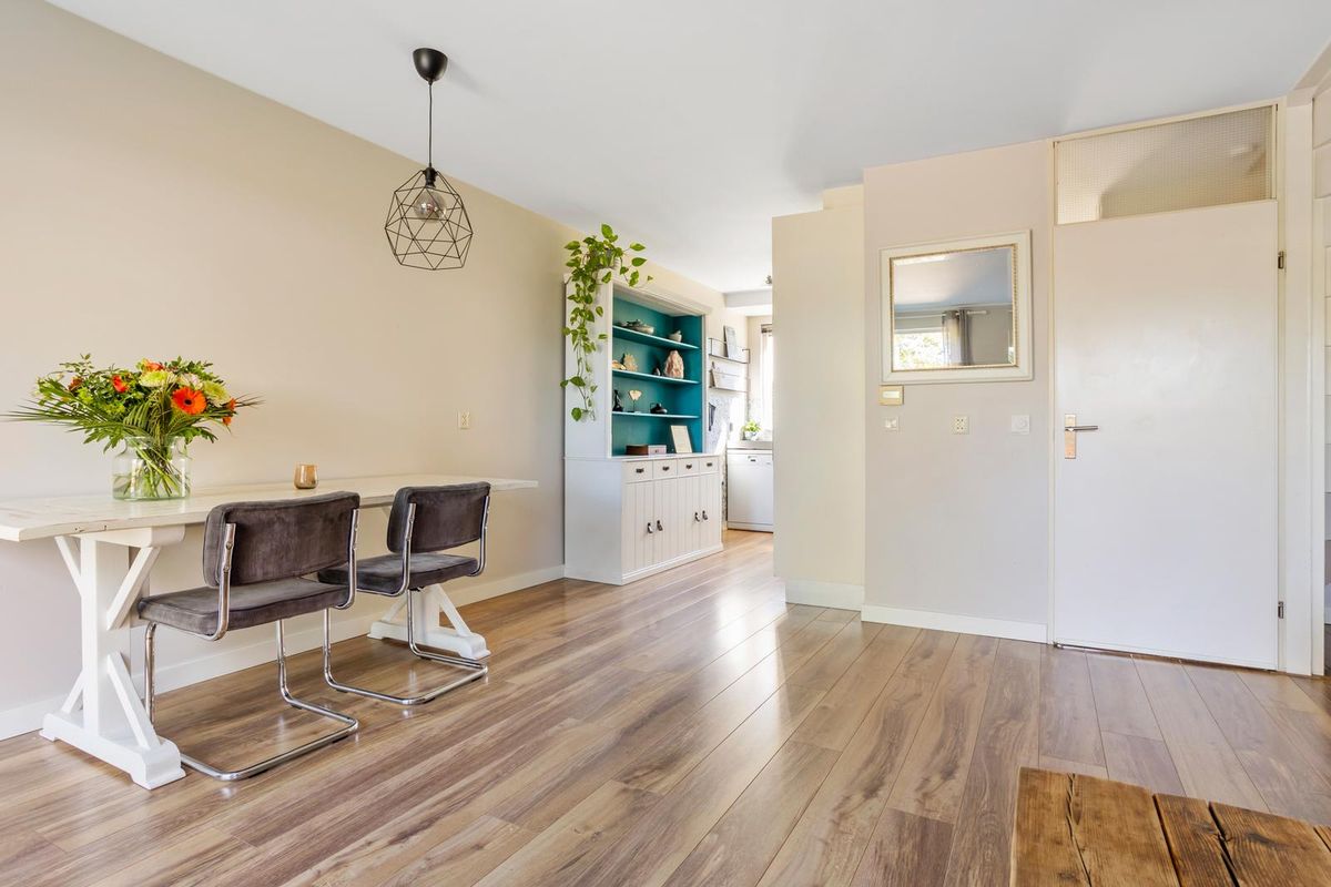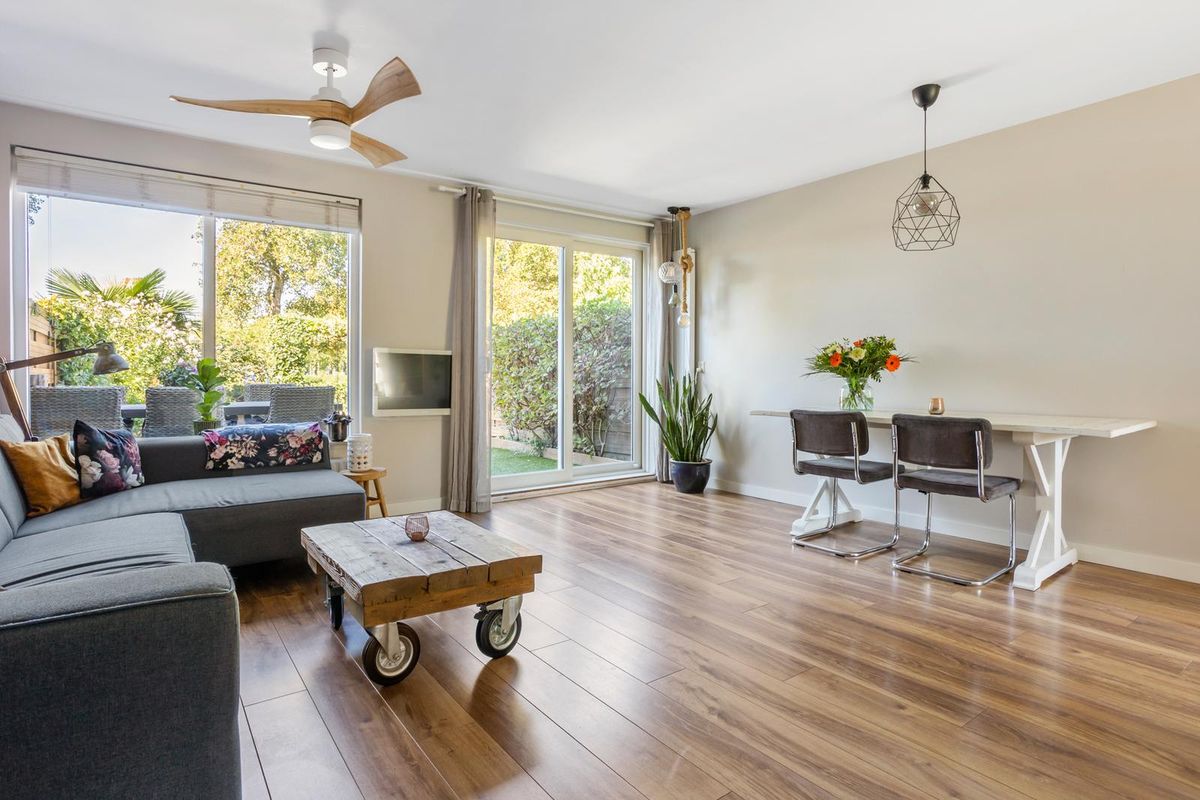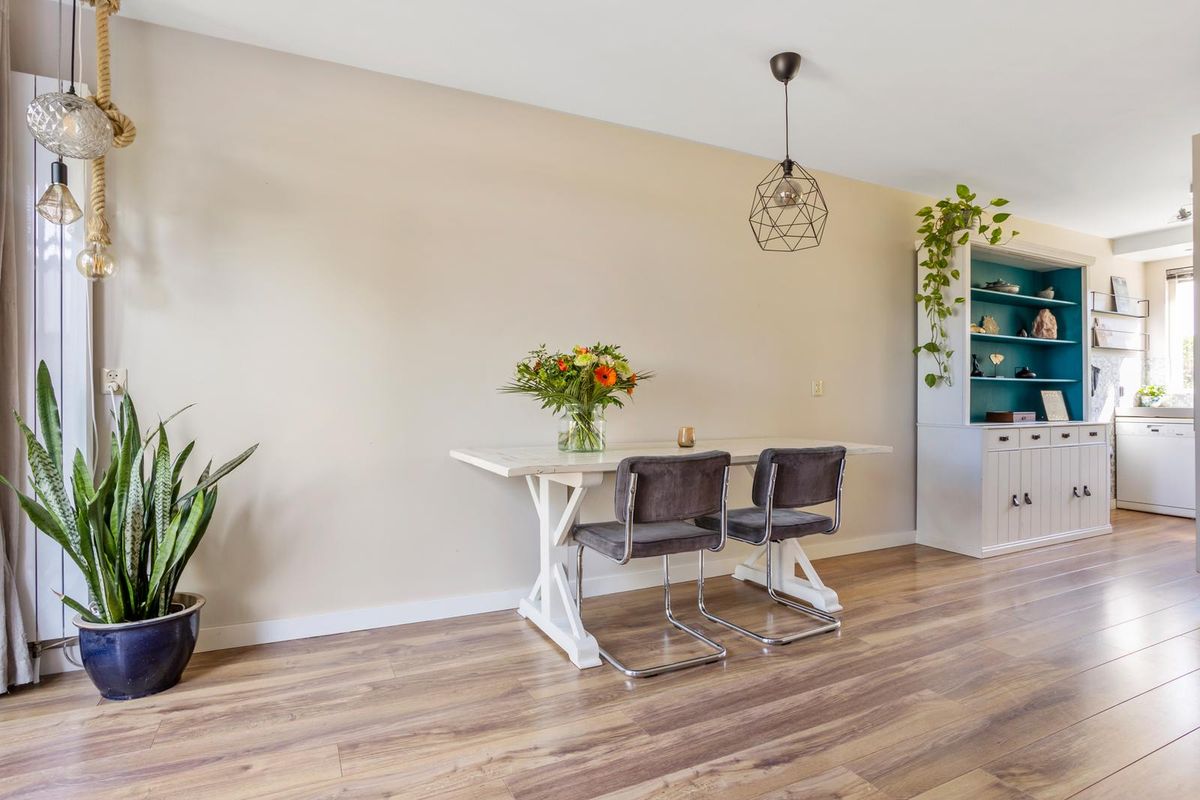De ruime woonkamer heeft twee grote raampartijen waardoor het daglicht rijkelijk binnenvalt. In 2024 is de gehele begane grond professioneel gestuukt en afgewerkt met hoogwaardige verf. De moderne laminaatvloer en de kunststof schuifpui (2022) zorgen voor een frisse uitstraling.