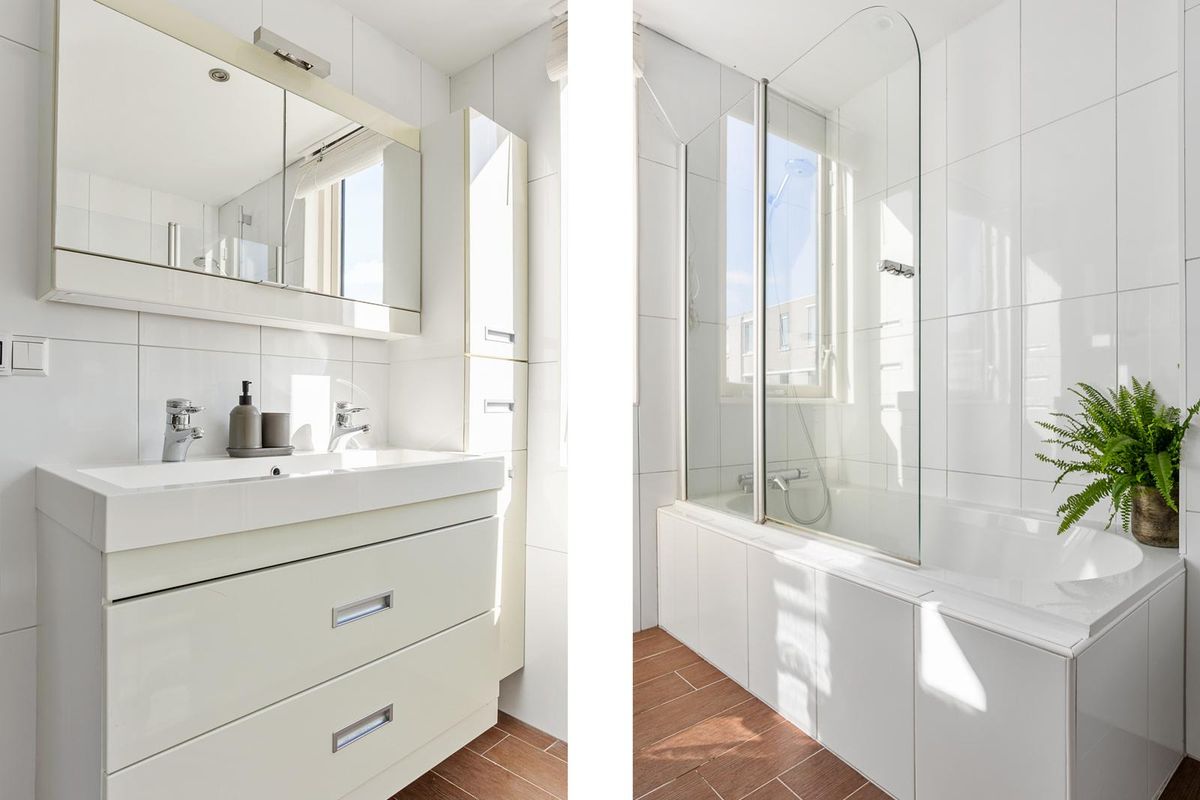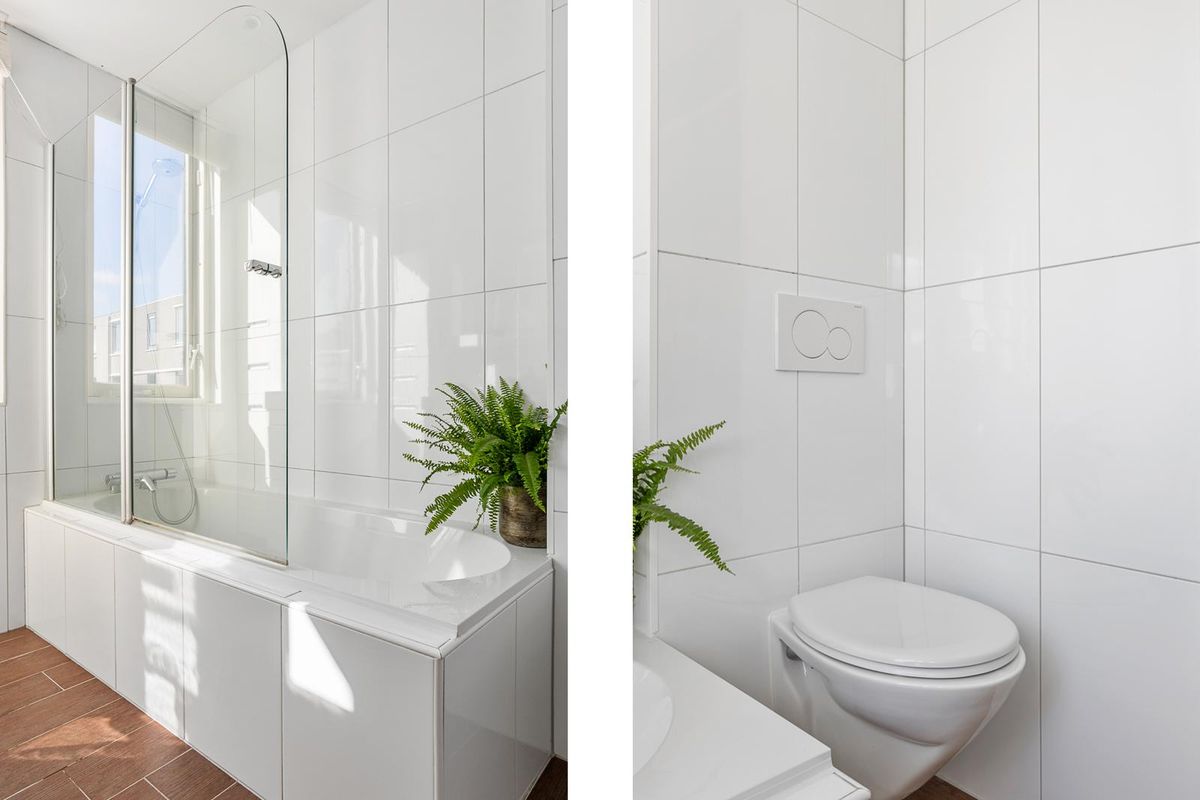 Hier bevinden zich twee goede slaapkamers en een royale hoofdslaapkamer. De trap naar deze verdieping is in 2019 volledig vernieuwd. De doorgelegde laminaatvloer zorgt voor een rustige uitstraling. De badkamer is compleet met een ligbad met douche, hangend toilet, vloerverwarming, houtlook tegels en luxe merkkranen die door het hele huis zijn toegepast.