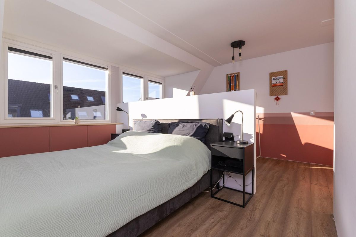 De tweede etage biedt volop mogelijkheden. Deze kamer, eveneens voorzien van een kunststof dakkapel (2021) op het zuidoosten, is perfect als extra slaapkamer, hobbyruimte thuiswerkplek óf sportkamer. De op maat gemaakte ombouwkasten verbergen op een slimme manier de installaties: de vernieuwde heteluchtverwarming (2022), de WTW-unit (2022), de cv-ketel (2022) en de mechanische ventilatie (2022). Ook de witgoedaansluitingen zijn hier keurig weggewerkt. In de nok bevindt zich extra bergruimte/vliering wat ideaal is voor seizoensspullen of andere opslag. Langs de wanden zijn bovendien extra kasten geplaatst, zodat er geen ruimte onbenut blijft.