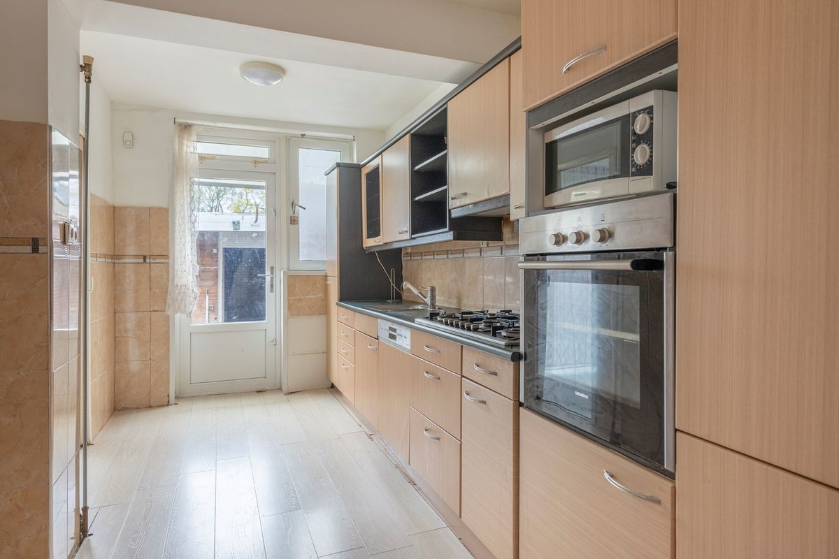 nette keuken (5,48 x 2,30) met veel kastruimte en diverse inbouwapparatuur, royale achtertuin van circa 35 m²