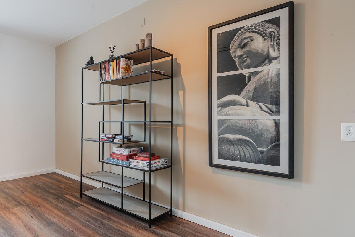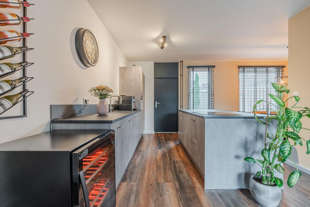 Entree met meterkast en toegang tot de gezellige woonkamer. Blikvanger hier is de moderne, recent vernieuwde keuken – een echte eyecatcher – compleet uitgerust met alle gewenste inbouwapparatuur zoals een Quooker, vaatwasser, koelkast, diepvries en een stijlvol kookeiland met Bora-inductiekookplaat. Daarnaast vind je op de begane grond een toilet, een slaapkamer/ kantoor, een badkamer met whirlpool, douche en wastafelmeubel, een praktische bijkeuken en een berging.