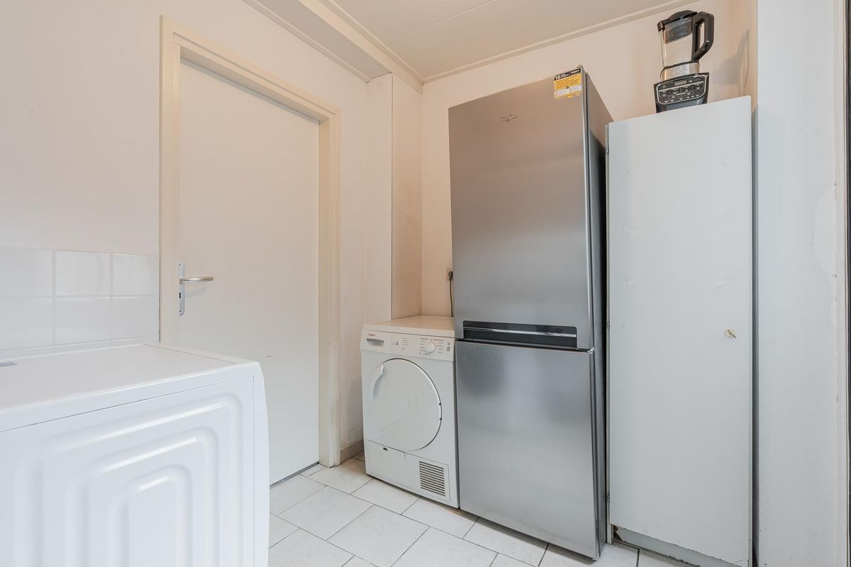 Via de vaste trap bereik je de tweede verdieping met overloop, een berging met de Cv-ketel (2023) en een slaapkamer.