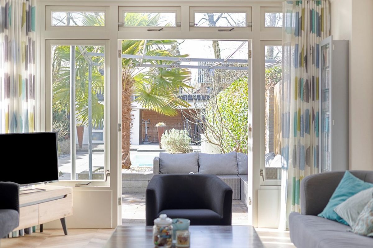 De woonkamer vormt het hart van de begane grond en kenmerkt zich door de open indeling en de aangename lichtinval. Grote raampartijen zorgen voor een ruimtelijk gevoel en de L-vormige indeling maakt het eenvoudig om een zithoek en een aparte eethoek te creëren. De ruimte loopt naadloos over in de keuken en via de openslaande deuren bereikt u de tuin.
