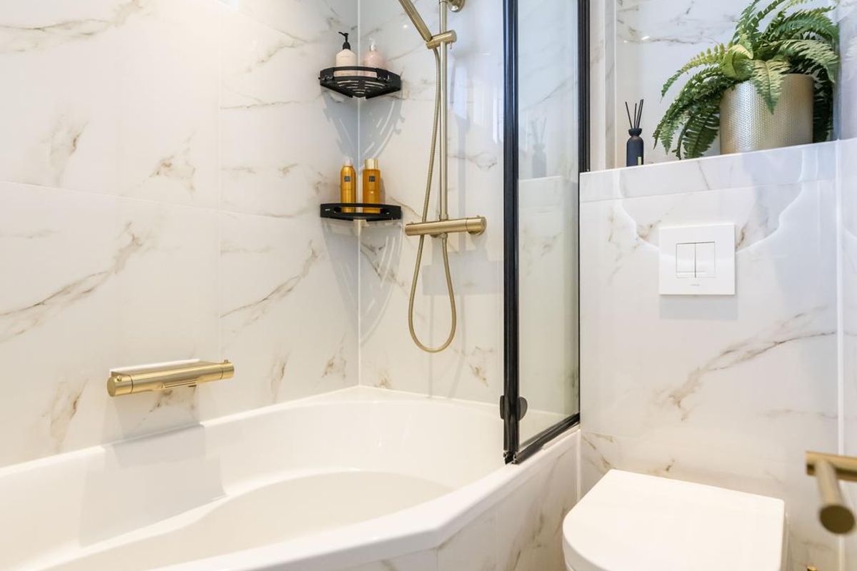• Een moderne badkamer, recent vernieuwd met eigentijdse materialen en een frisse uitstraling.