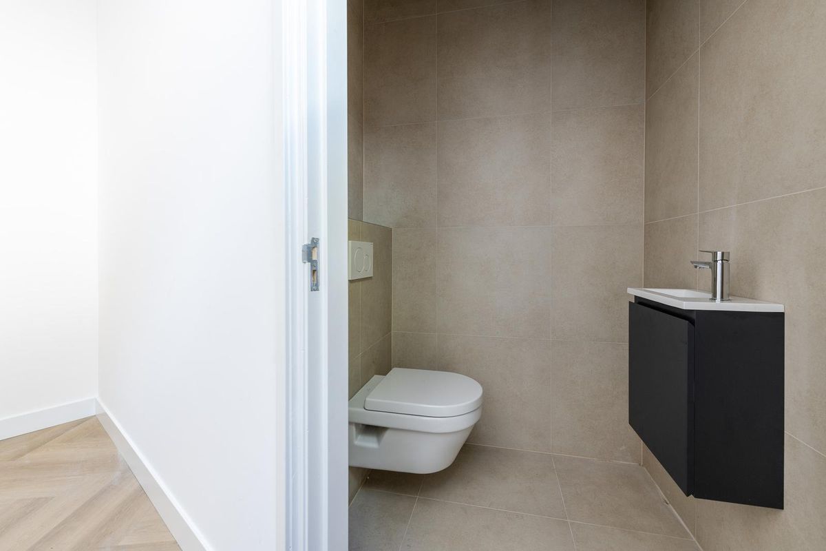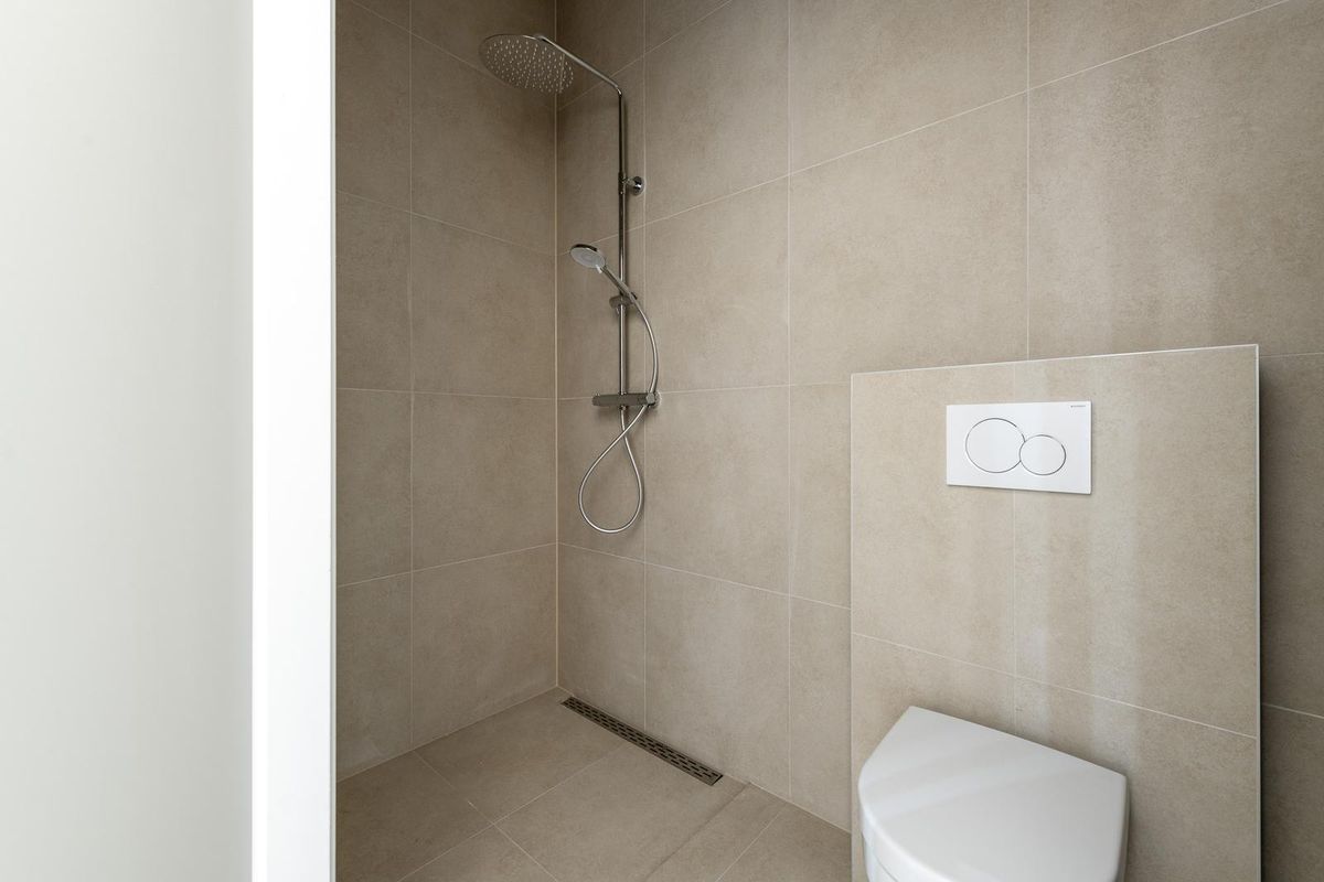 De entree van deze woning vind je aan de zijkant. In de ruime hal is een modern toilet met fonteintje aanwezig. Aan de voorzijde bevindt zich de woonkamer. Aansluitend is er in de gang een prettige provisie- c.q. stookruimte aanwezig. Vanuit de slaapkamer loop je zeer praktisch zo de inpandige badkamer met douche, wastafelmeubel en toilet in.