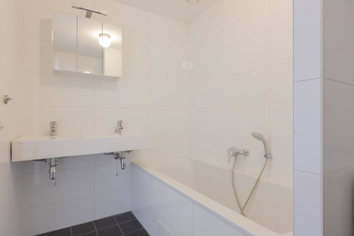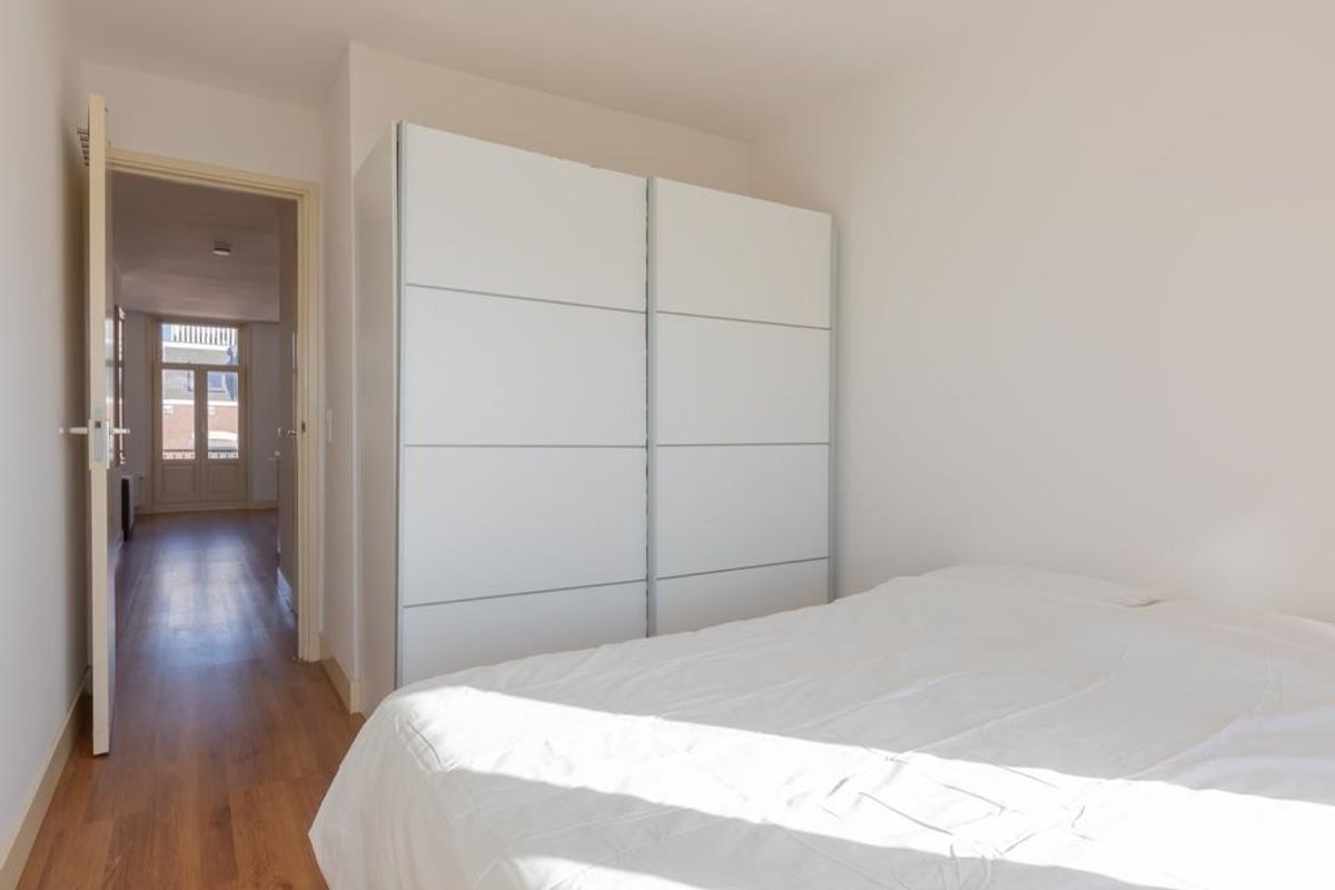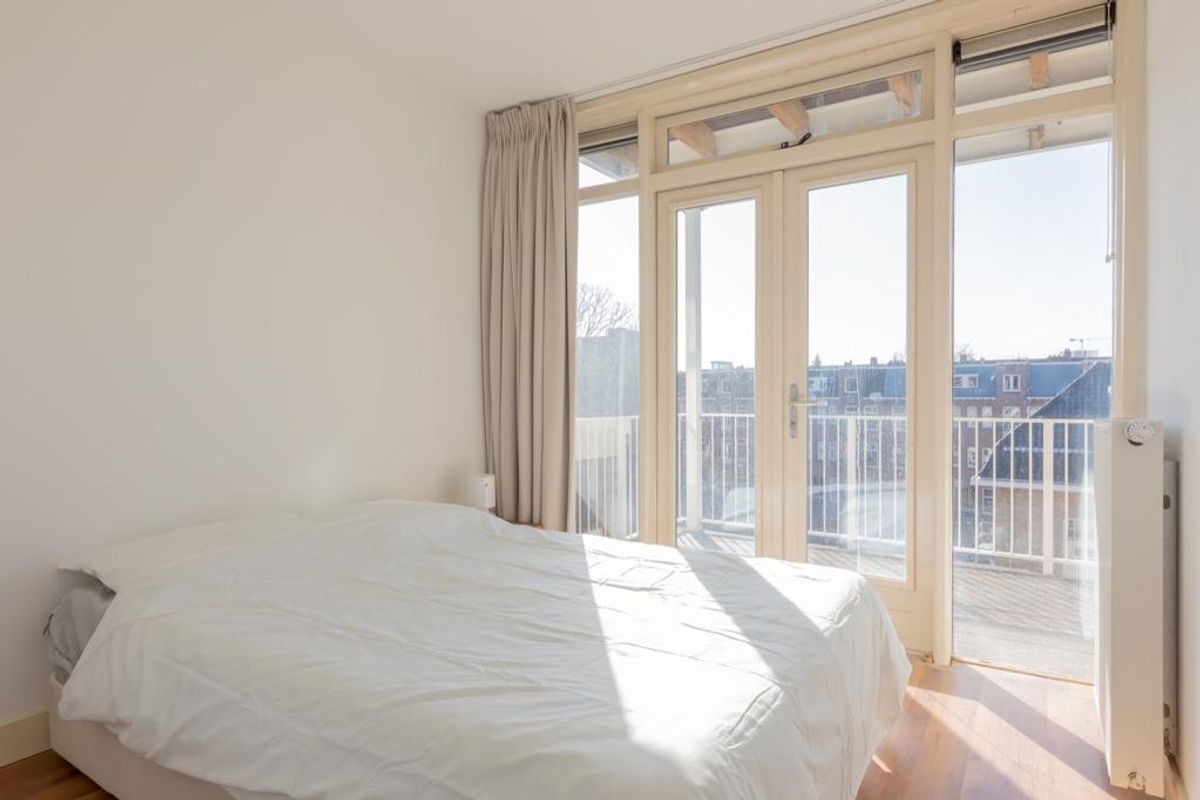 In De Pijp, we offer this apartment with two bedrooms, two bathrooms, and a south-facing balcony.