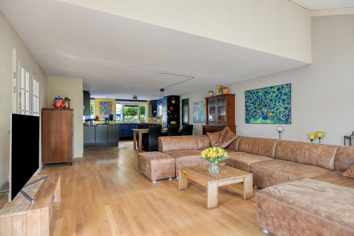 De tuingerichte woonkamer is licht en ruim en biedt toegang tot een extra kamer op de begane grond.