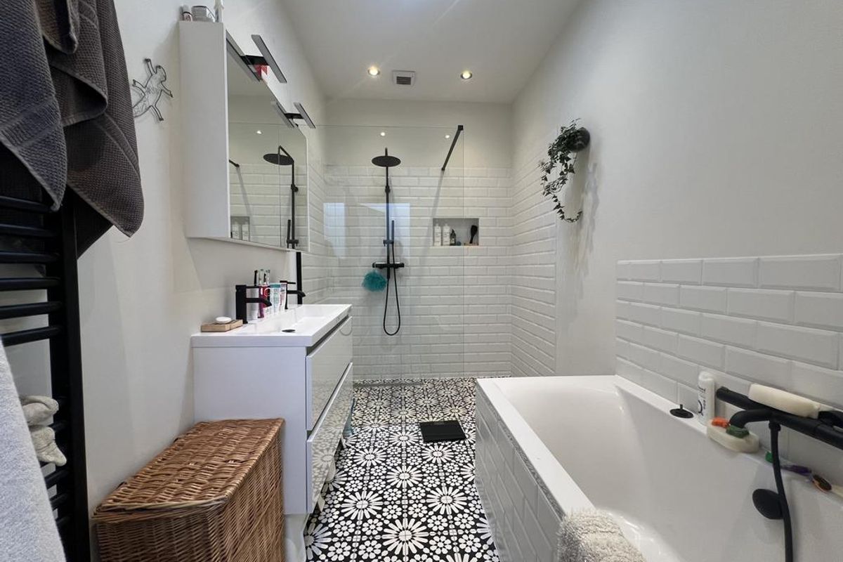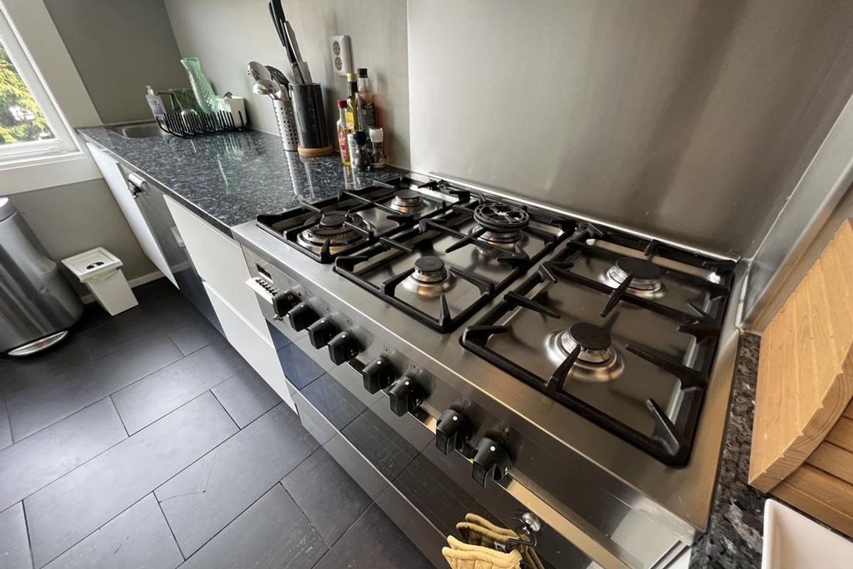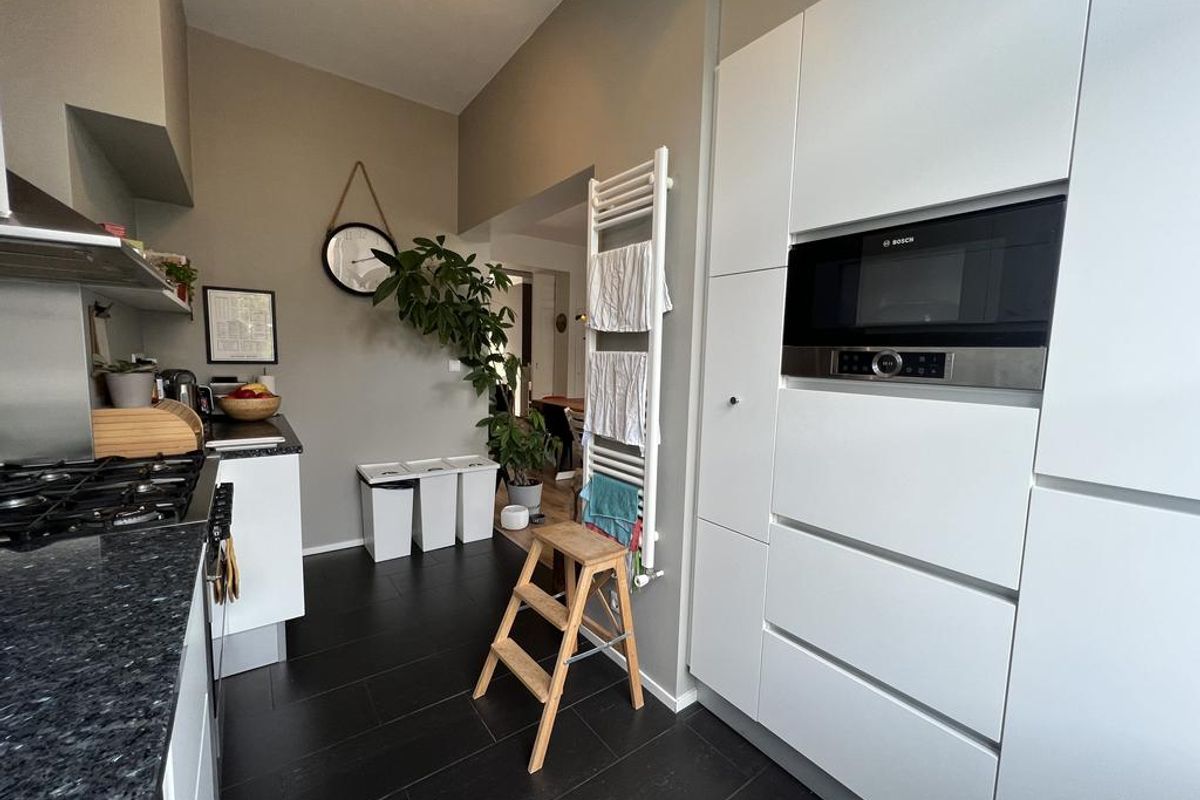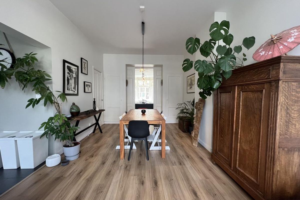 Enter your own entrance on the ground floor, stairs to the first floor. Spacious en suite living and dining room (approx. 14 meters deep!) with luxurious semi-open kitchen at the rear, equipped with built-in appliances (such as 6-burner gas stove, dishwasher, built-in microwave, fridge-freezer), large windows, lots of light! That makes it extra comfortable. Separate toilet and handy storage cupboard, and a bedroom at the front, ideal as a workplace or hobby room. Stairs to the top, where you will find no less than 4 more bedrooms! Two of an incredibly good size, both with access to their own balcony (front and rear). Two additional rooms at the front and rear (a total of 5 on both floors). Lots of light, also through skylights. The bathroom feels like a true spa: with a lovely bath, walk-in rain shower and double sink with furniture. In the hallway there is a separate toilet and cupboard with washing machine and dryer (these belong to the house). The house is fully equipped with double glazing. Luxury, comfort and space everywhere!
