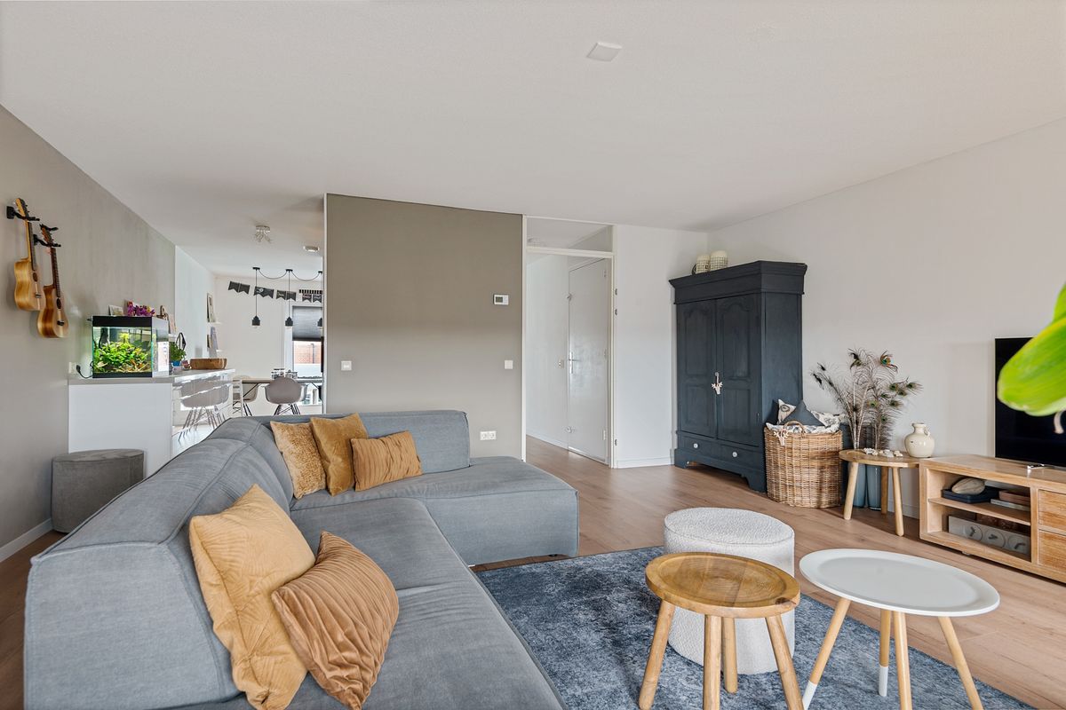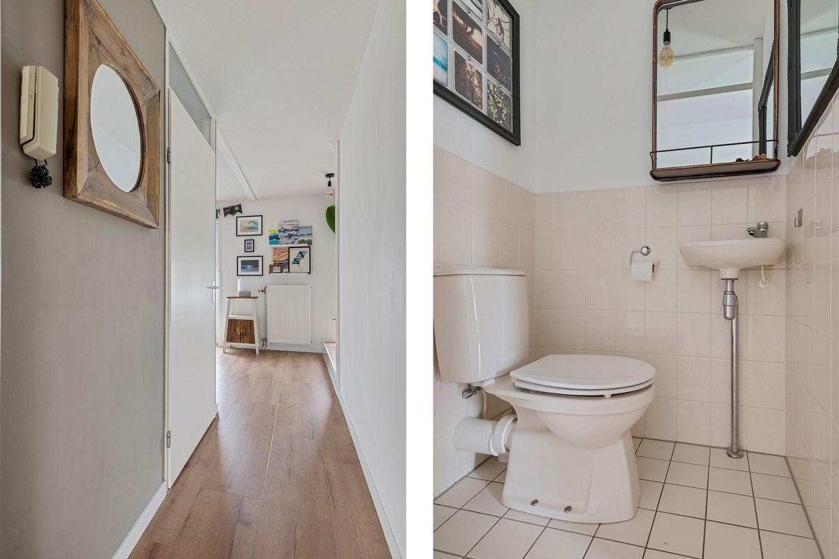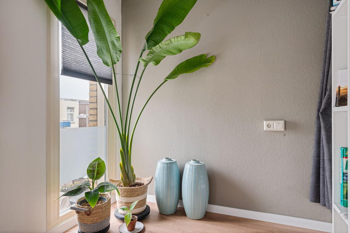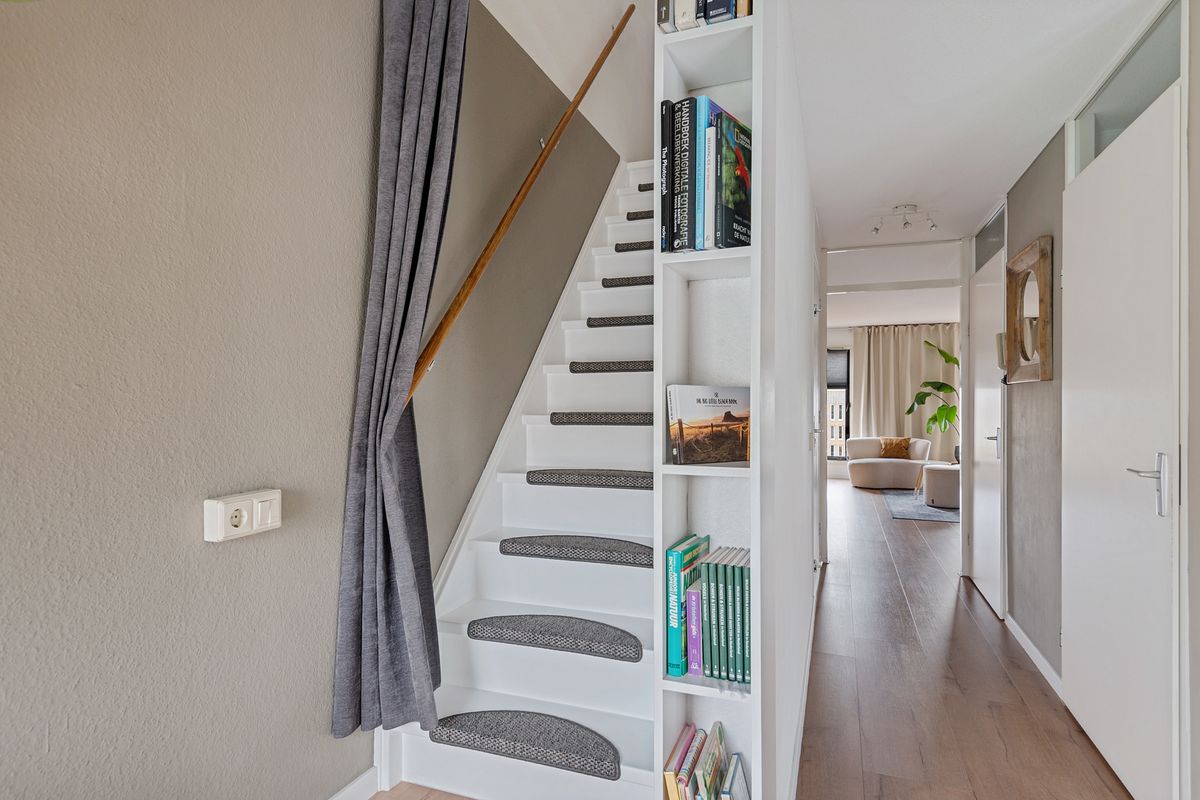 Entree; toilet met fontein met daarnaast gelegen een ruime berging met aansluiting voor wasmachine, droger en stadsverwarmingsinstallatie. Aan de achterzijde is het woongedeelte met hoge ramen en een openslaande deur naar het eerste balkon met vrij uitzicht. De halfopen keuken met diverse luxe inbouwapparatuur zoals een vaatwasser (2025), oven en koel/vriescombinatie, en een kookplaat (2025) met afzuigkap ligt tussen de woonkamer en eetkamer in. Aan de straatzijde is de ruime eetkamer met openslaande deuren en een frans balkon. Vanuit de eetkamer is er de trap naar de tweede verdieping. .