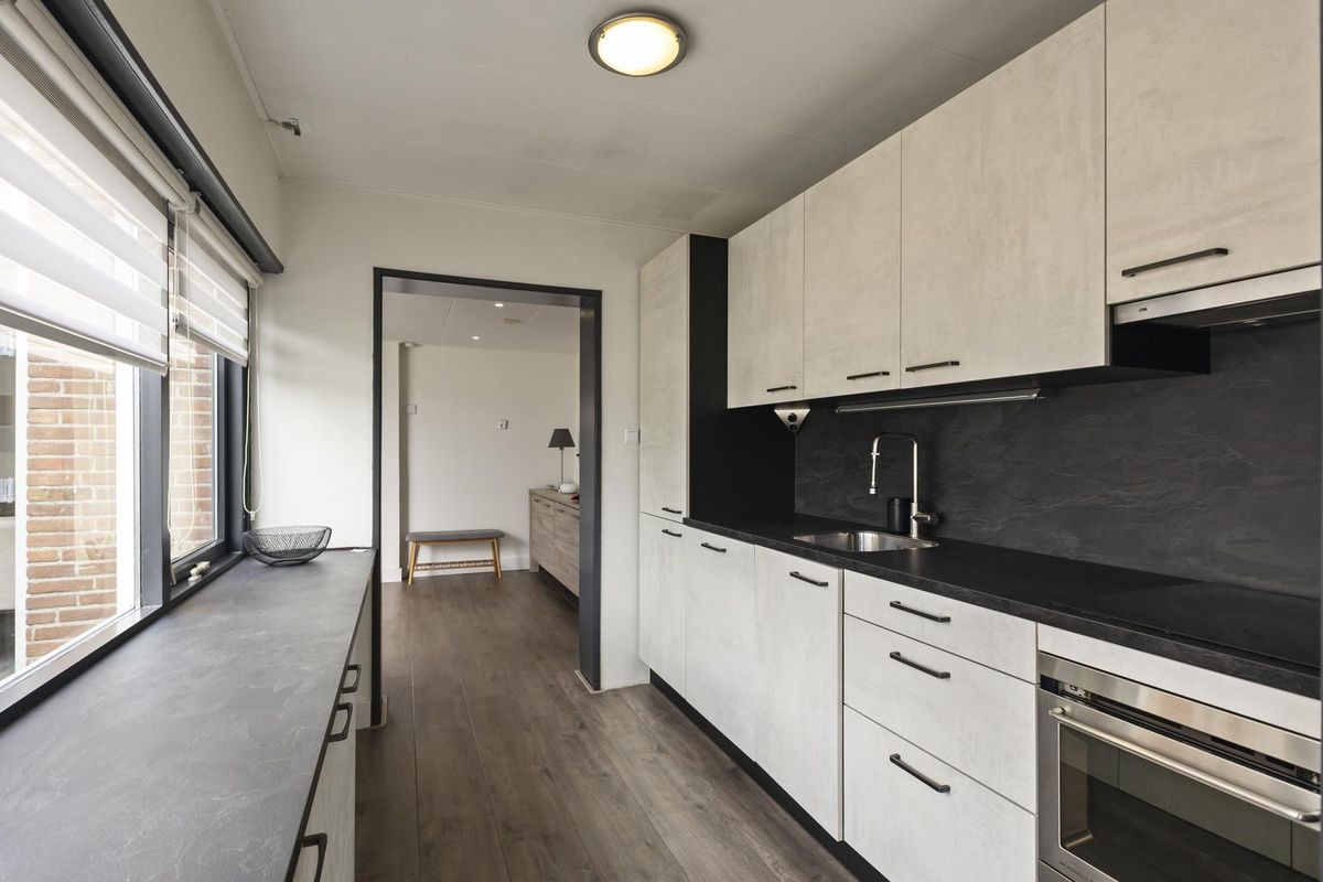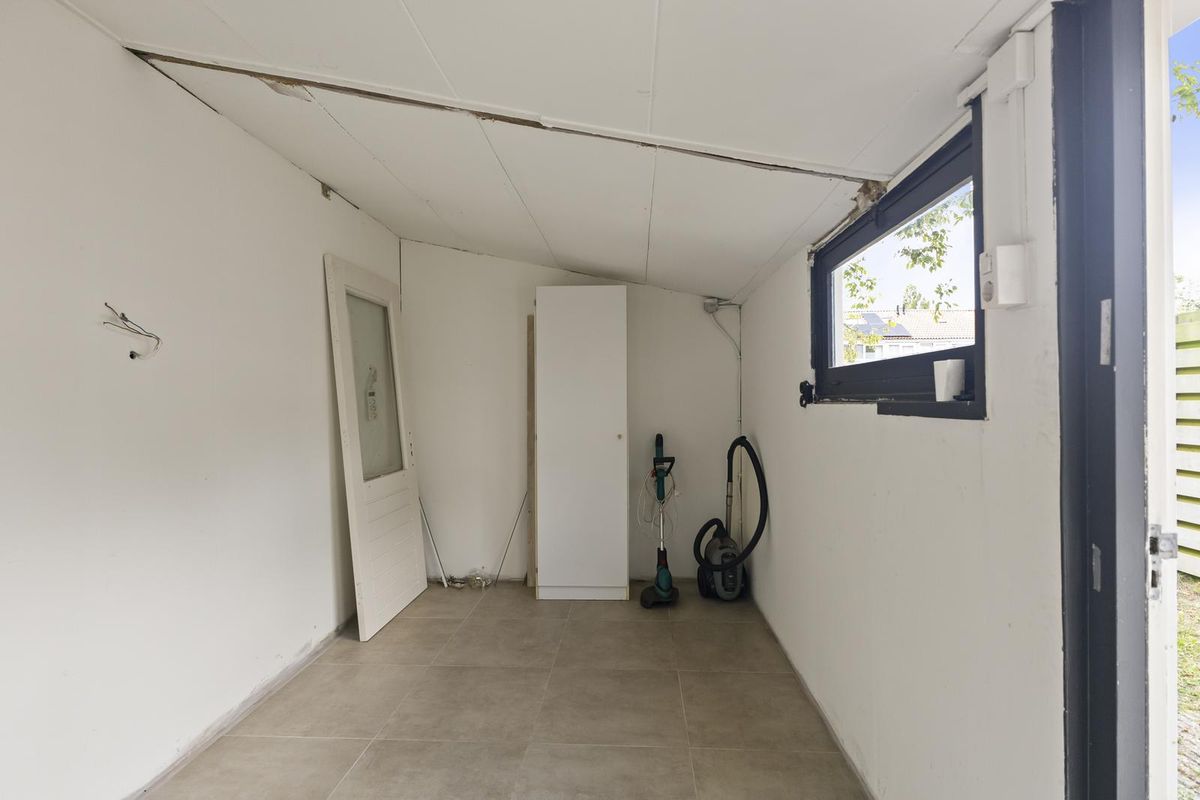 entree, modern toilet, heerlijke lichte en ruime woonkamer met openslaande tuindeuren, moderne keuken voorzien van een elektrische kookplaat, afzuigkap en koelkast/vriezer, vaatwasser, oven en warm water boiler. De berging is inpandig en buitenom bereikbaar.
