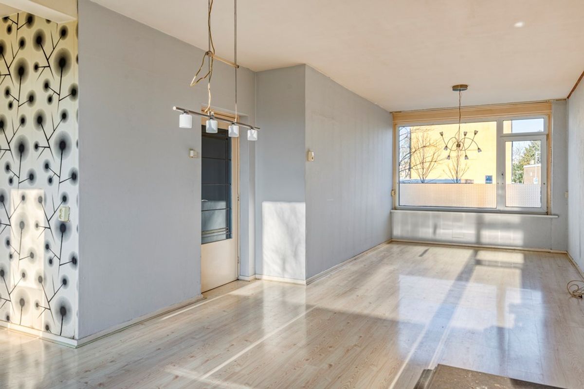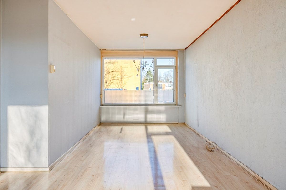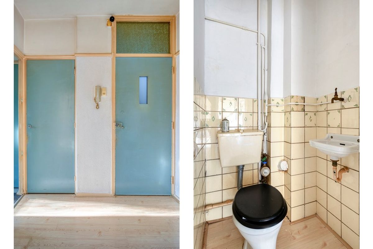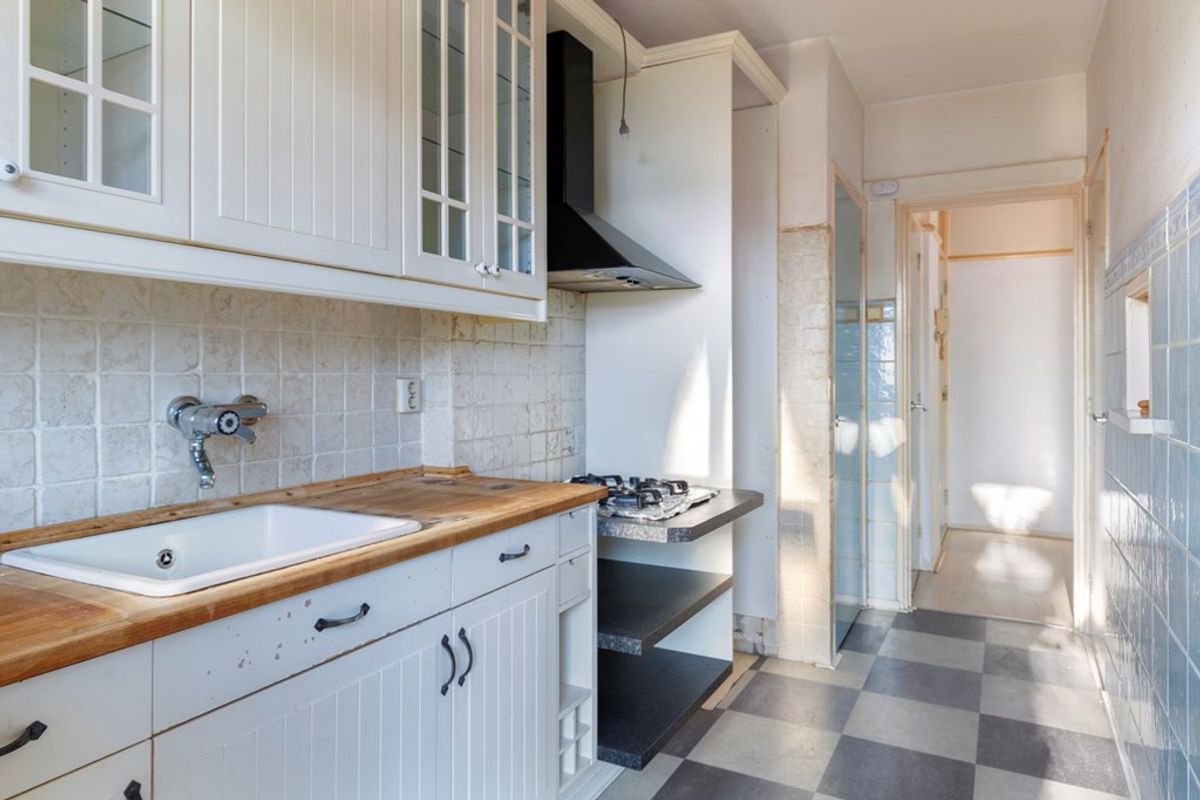Entree, hal met toilet, inpandige kast, slaapkamer, keuken, badkamer, woonkamer met mooie lichtinval (vh 2 kamers), balkon.