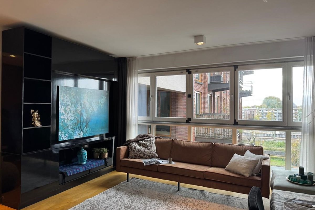 This information has been compiled by us with the necessary care. On our part, however, no liability is accepted for any incompleteness, inaccuracy or otherwise, or the consequences thereof. All specified sizes and surfaces are indicative. The interested party has his own duty to investigate all matters that are important to him or her. Luxuriously designed 4 bedroom, 2 bathroom property (157 M2) with storage, bike storage, and a dedicated parking spot in the garage (next to elevator entrance). Wooden floors, high ceilings, view on the water front, possibility to have official business address with own entrance, remote controlled curtains and light fixtures, located next to the very heart of Amsterdam.