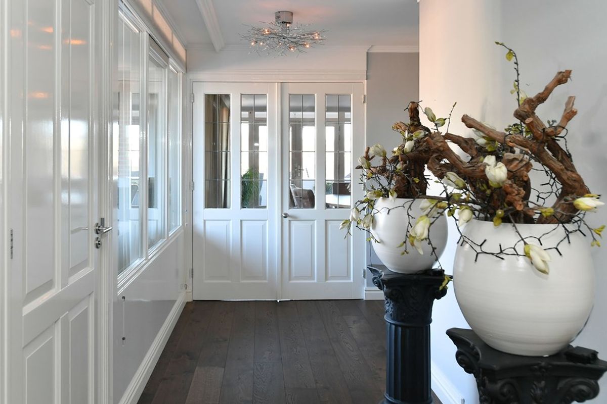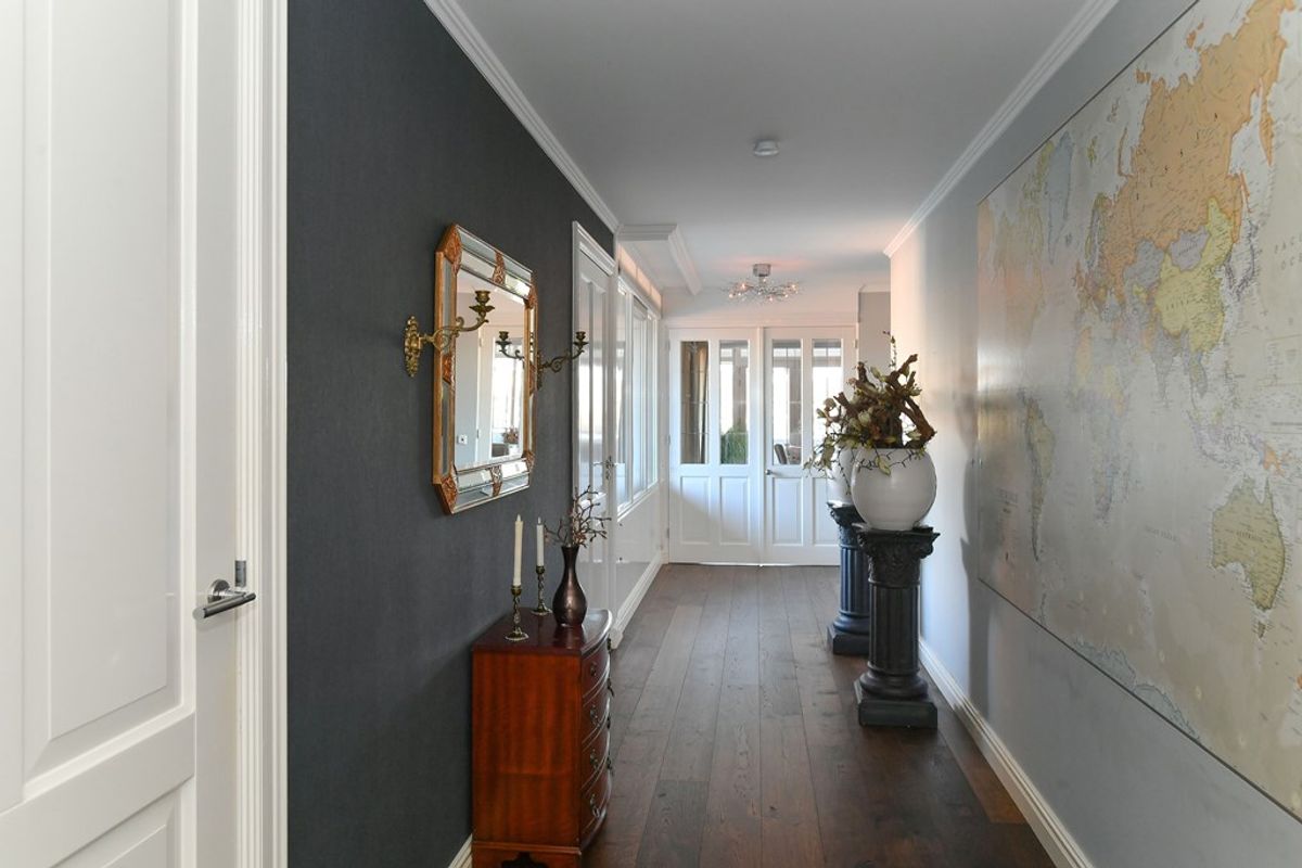 Via de overdekte entree aan de buitenzijde kom je binnen in de royale hal, die direct de hoogwaardige afwerking en het gevoel van ruimte verraadt dat dit penthouse kenmerkt.