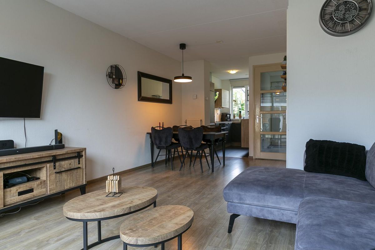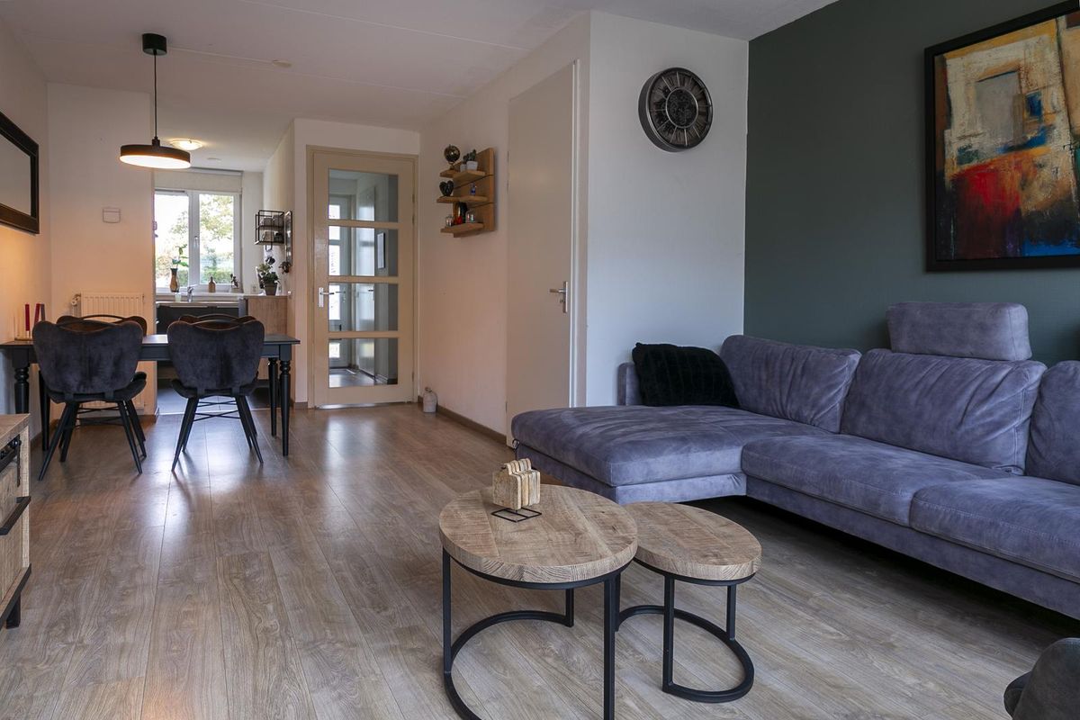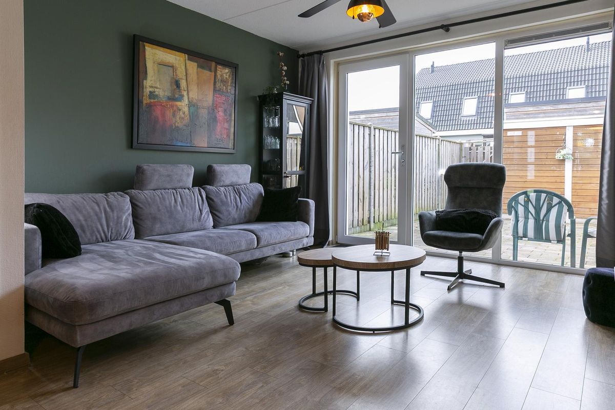 De woonkamer biedt toegang tot de onderhoudsvriendelijke achtertuin met terras en berging. De tuin is gelegen op het westen, door deze ligging kunt u nagenoeg de gehele dag genieten van de zon.