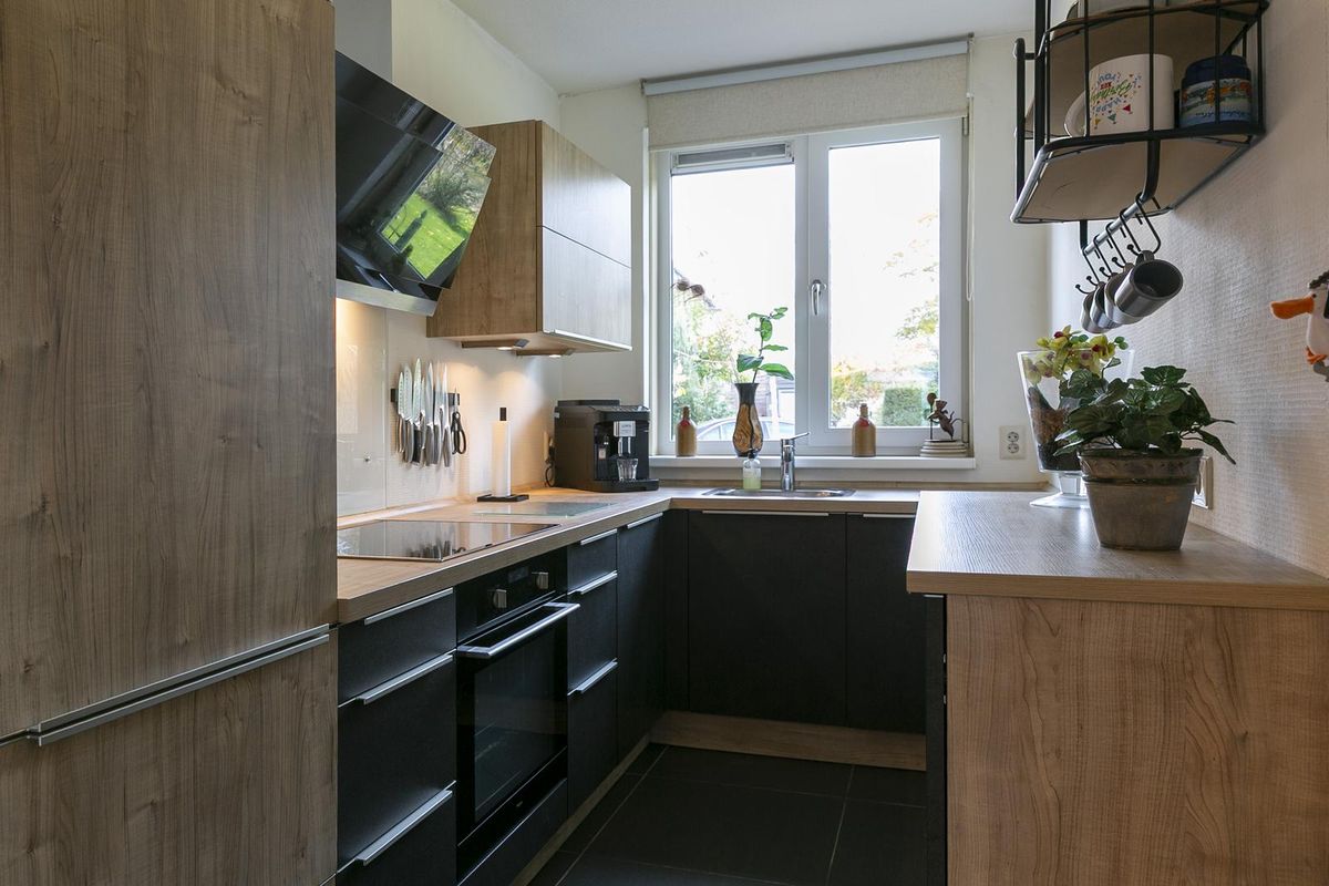 De open keuken aan de voorzijde is modern ingericht en voorzien van diverse inbouwapparatuur, waaronder een inductie kookplaat, afzuigschouw, koelkast, oven en uiteraard een vaatwasser. Vanuit de keuken geniet u van een vrij uitzicht over de straat