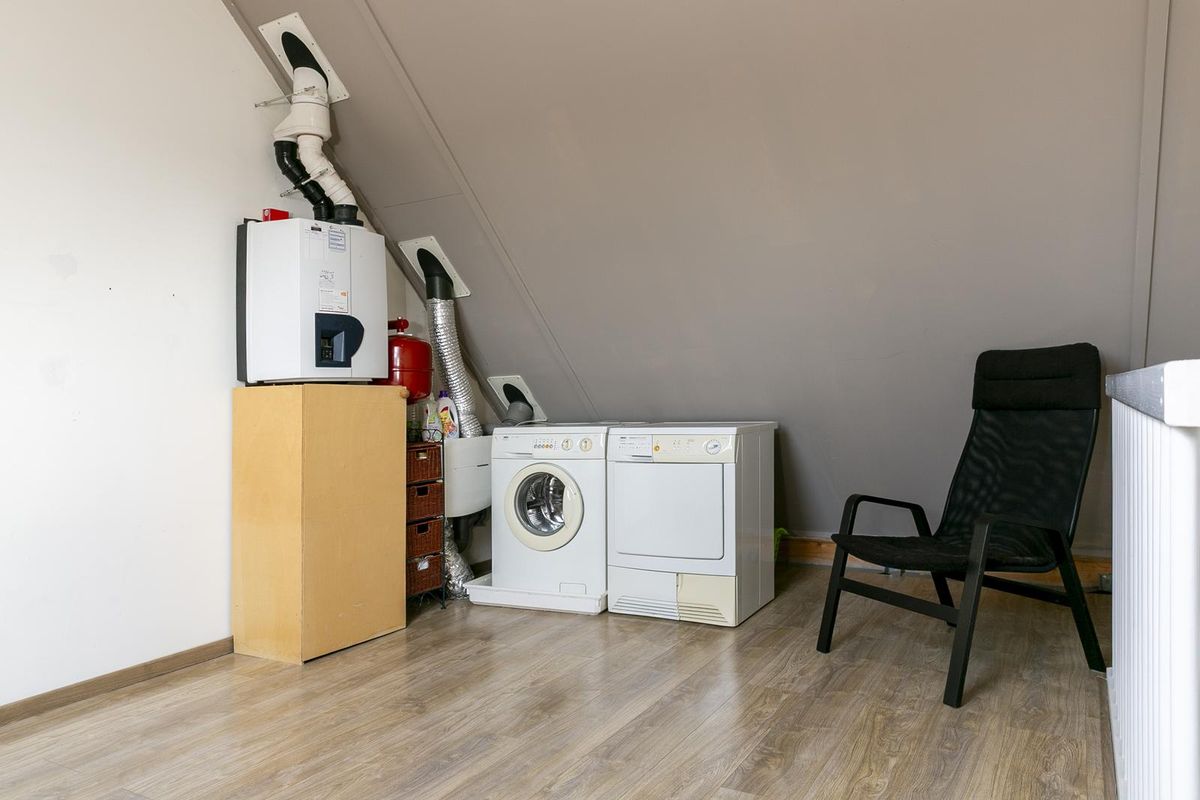 Via een vaste trap bereik je de zolder , hier treffen we de opstelplaats van de ATAG HR CV combiketel en de wasmachine / droger aansluiting aan. Het realiseren van een derde slaapkamer behoort tot de mogelijkheden!