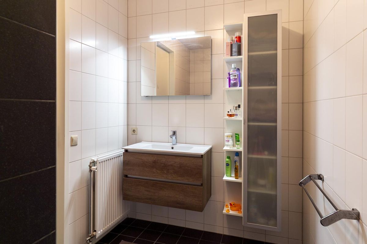Op de verdieping bevinden zich twee ruime slaapkamers, beide keurig afgewerkt en voorzien van voldoende lichtinval. De moderne badkamer is uitgerust met een inloopdouche, wastafelmeubel en tweede toilet.