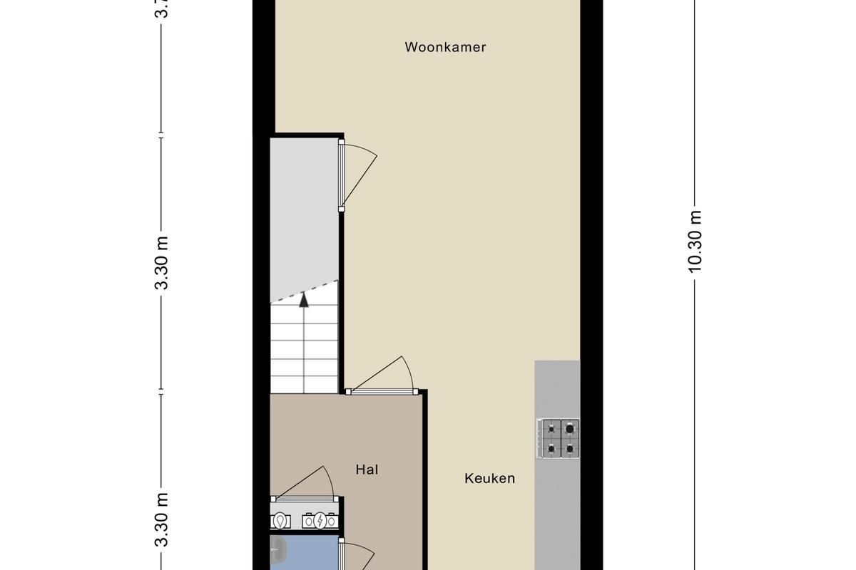 Via de voortuin kom je binnen in de hal met toilet, moderne meterkast en trapopgang. De lichte woonkamer met grote raampartijen en strak afgewerkte wanden vormt het hart van de woning. De woonkamer is van een dusdanig formaat dat er voldoende ruimte is voor een flinke eettafel!