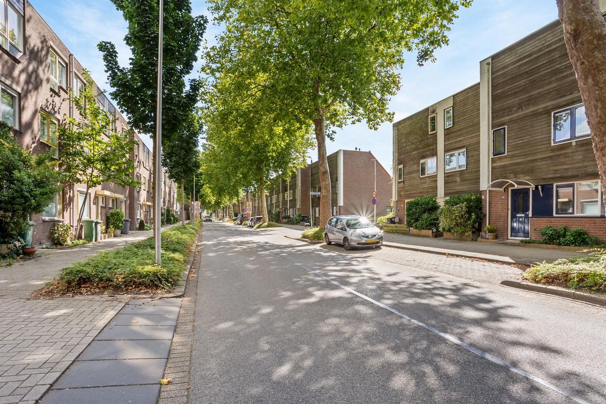 De op het zuiden gelegen achtertuin is verzorgd aangelegd met gras en beplanting, en beschikt over een praktische berging en overkapping achterin de tuin. Op de achtergevel is een elektrisch zonnescherm gemonteerd.