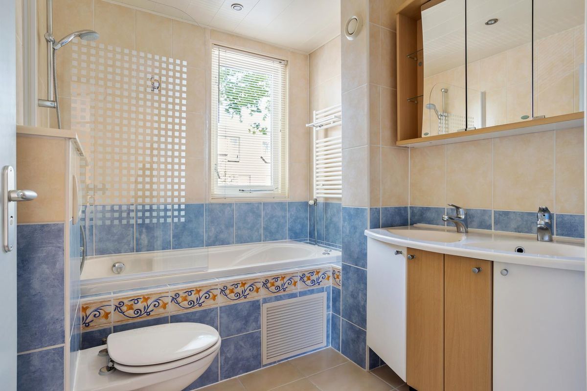 Op de eerste verdieping bevinden zich drie slaapkamers: twee aan de achterzijde met extra bergruimte, en één slaapkamer aan de voorzijde. De badkamer is betegeld en voorzien van een ligbad (met whirlpool functie), tweede toilet, wastafelmeubel met dubbele kraan en een designradiator. Dankzij het raam is er veel daglicht en natuurlijke ventilatie.