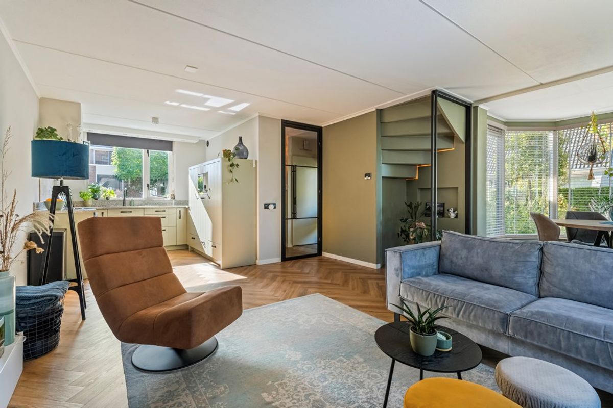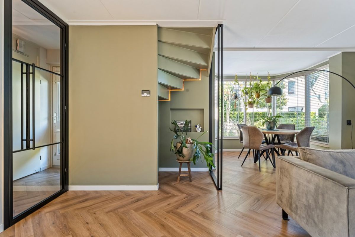 De keuken loopt over in de woonkamer die vervolgens naadloos aansluit op de eetkamer in de erker. Dit is niet alleen een fijne plek om te eten of samen spelletjes doen, maar ook thuiswerken kan hier uitstekend, inclusief zicht op de sfeervolle tuin.