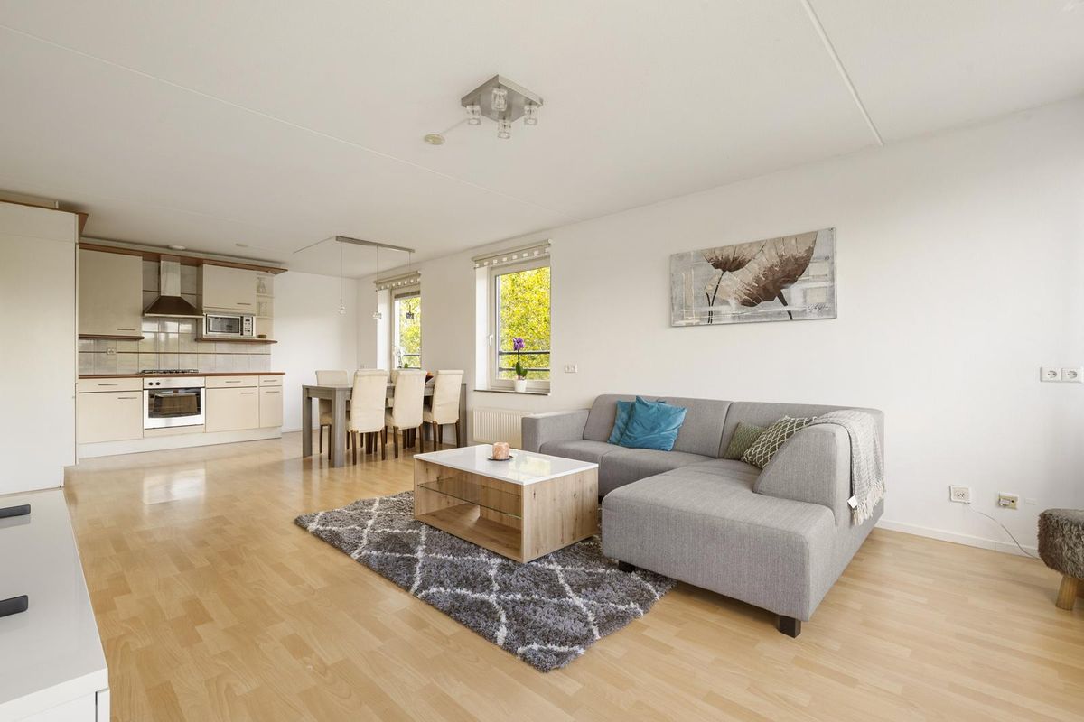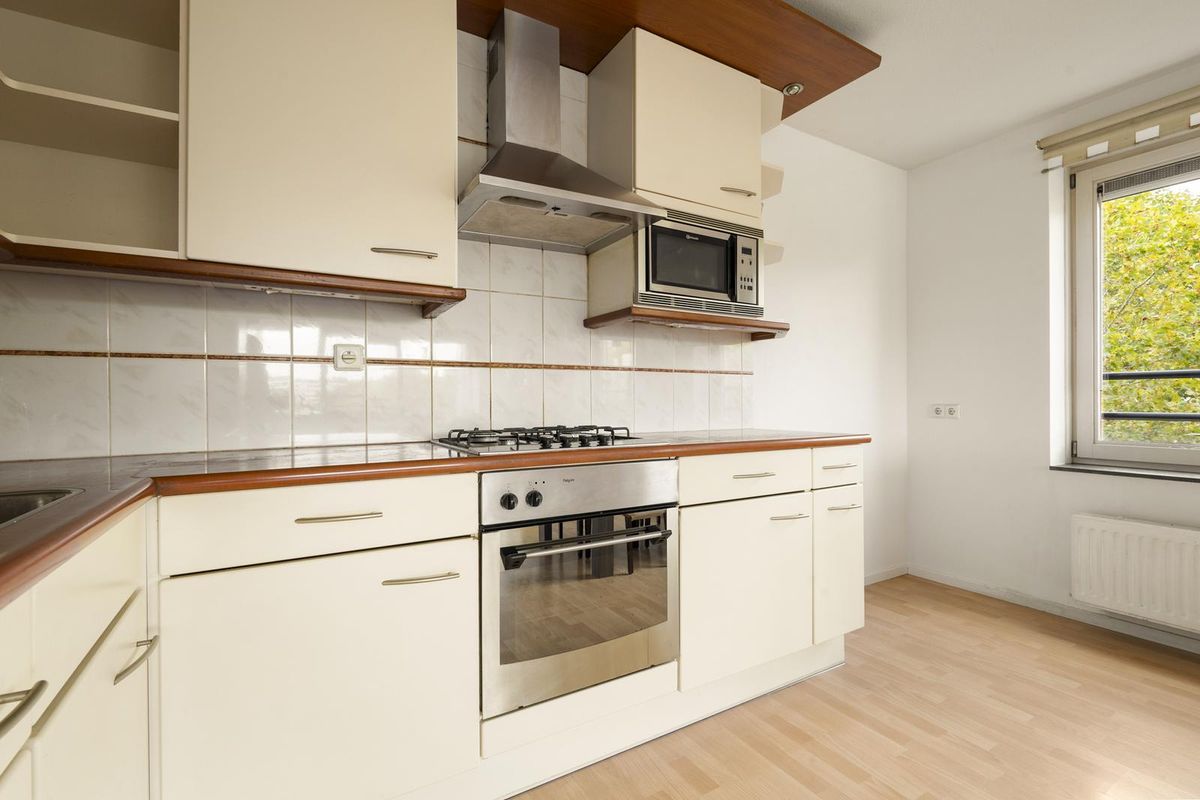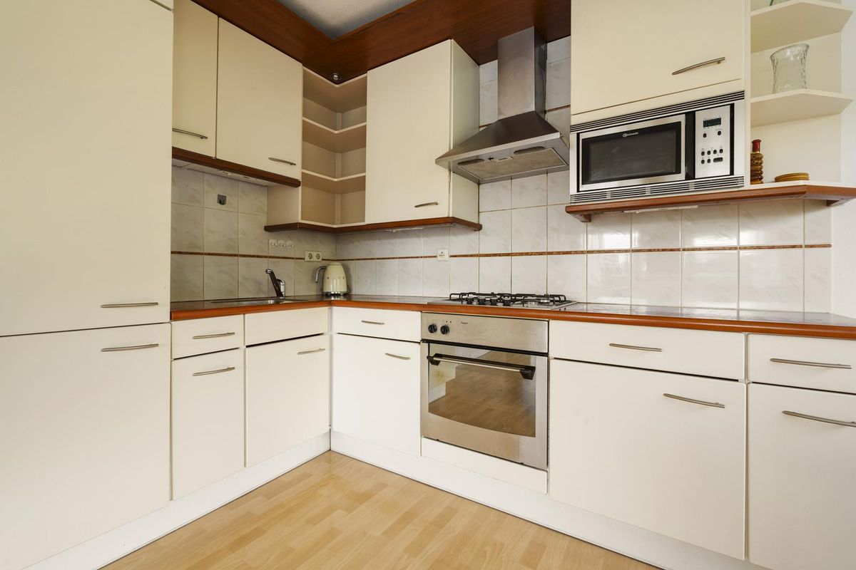 De royale woonkamer ligt aan de voorzijde en valt direct op door het aangename lichtinval. Aansluitend vind je de open keuken in hoekopstelling, voorzien van diverse inbouwapparatuur zoals een magnetron en oven.