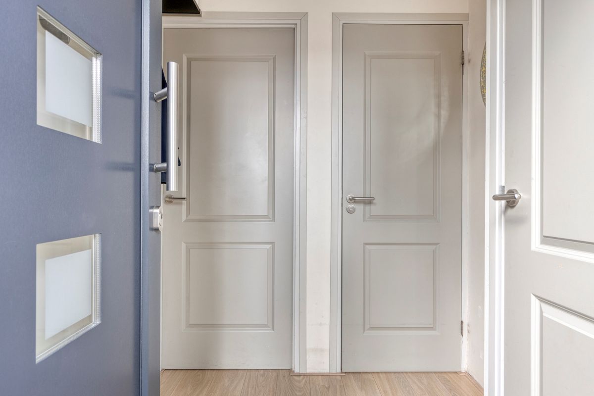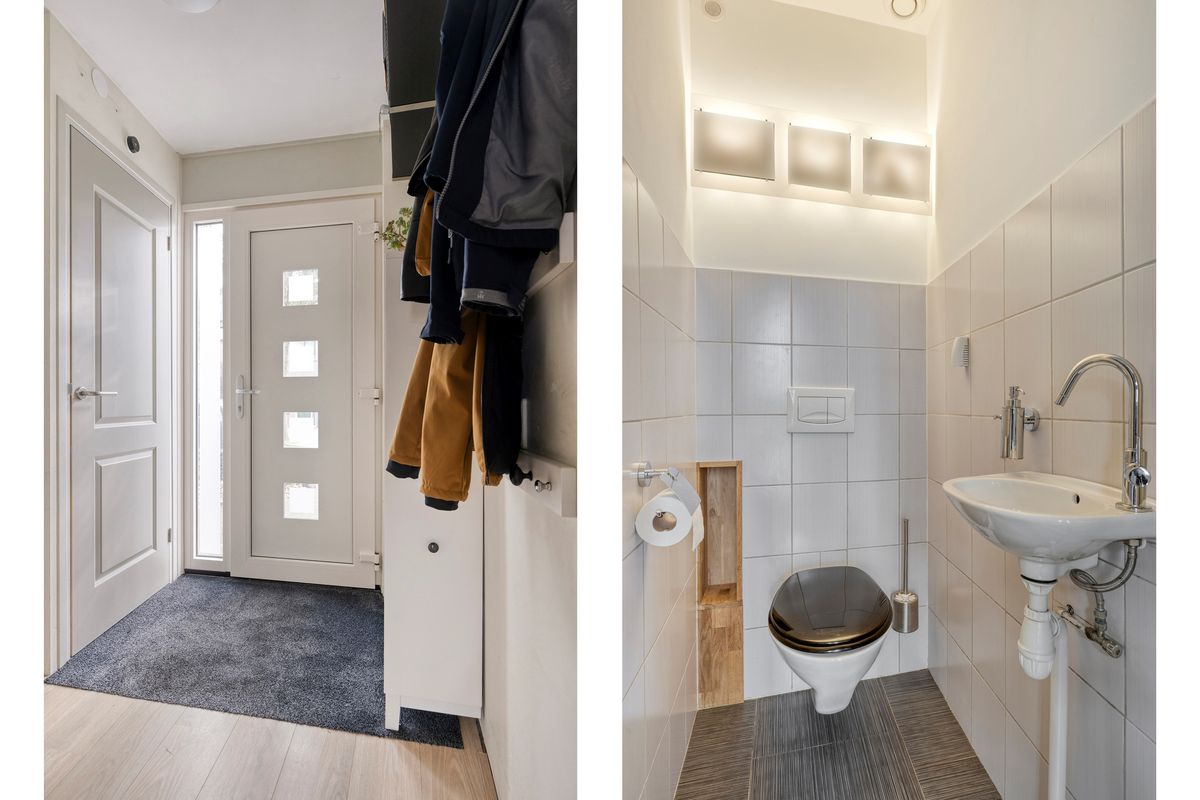 Vanuit de hal/entree met meterkast is er toegang tot het toilet en de woonkamer met open keuken.