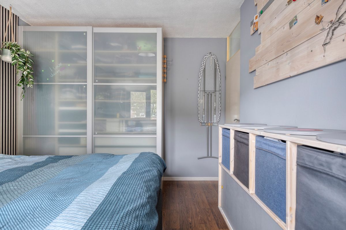 Middels een vaste trap is de voorzolder bereikbaar. Hier zijn een warmtepompboiler, een zonneboiler en de aansluiting voor de wasmachine gesitueerd. Vanuit de voorzolder is er toegang tot een ruime 4e slaapkamer. Op deze slaapkamer zijn een wastafel en airconditioning aanwezig. De vloer van deze verdieping is v.v. laminaat en kurk. De wanden zijn deels v.v. behang. Het plafond is afgewerkt met panelen. De kozijnen zijn van kunststof en v.v. HR++ glas en rolluiken aan de achterzijde.