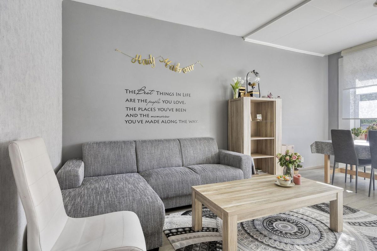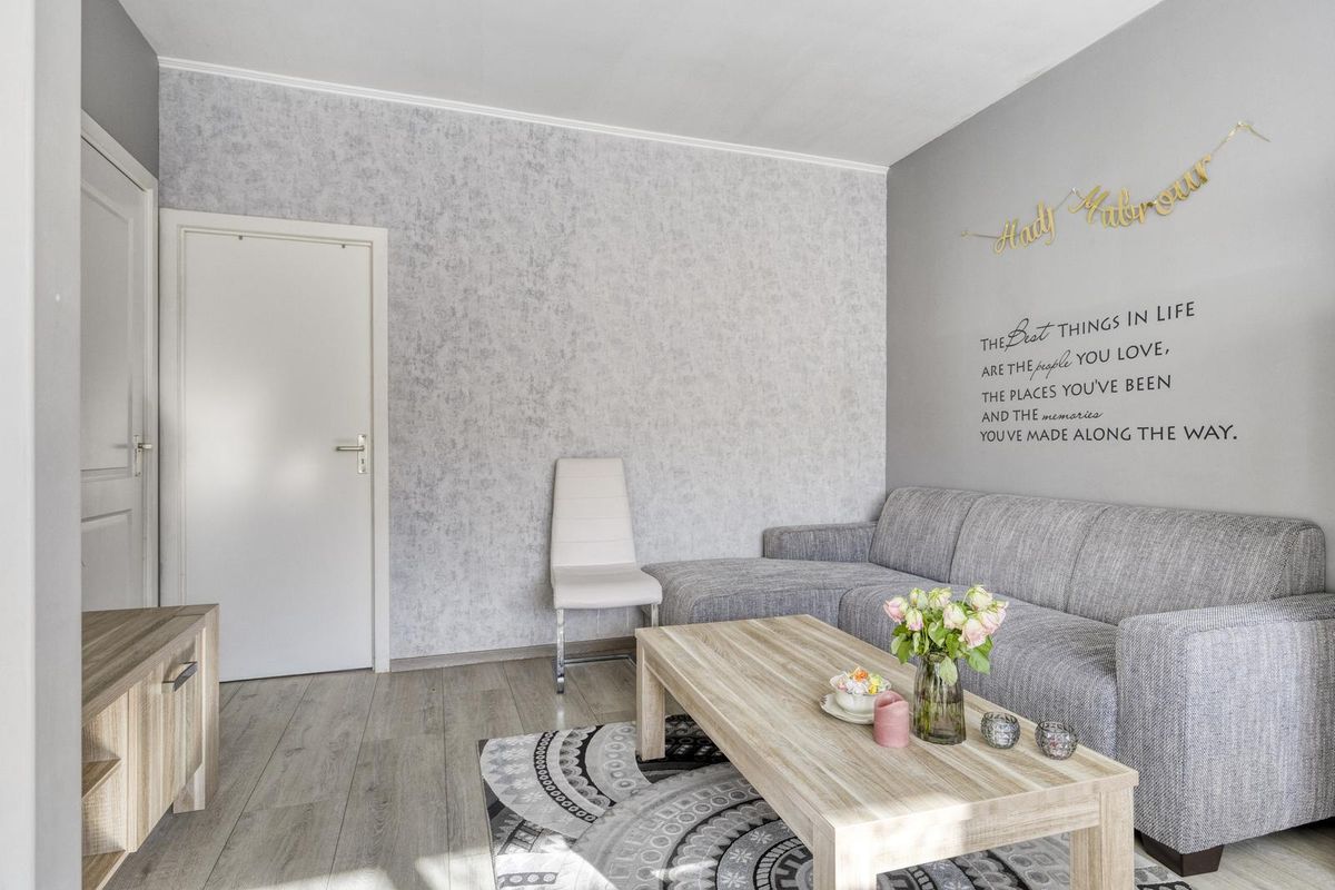 -Woonkamer: De woonkamer is strak afgewerkt met een neutraal kleurgebruik en een moderne vloer. Aan de achterzijde bevindt zich de eetruimte met zicht op het balkon, grenzend aan de open, praktisch ingedeelde keuken. Vanuit de woonkamer is er tevens toegang tot de slaapkamer.