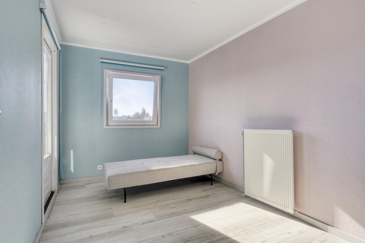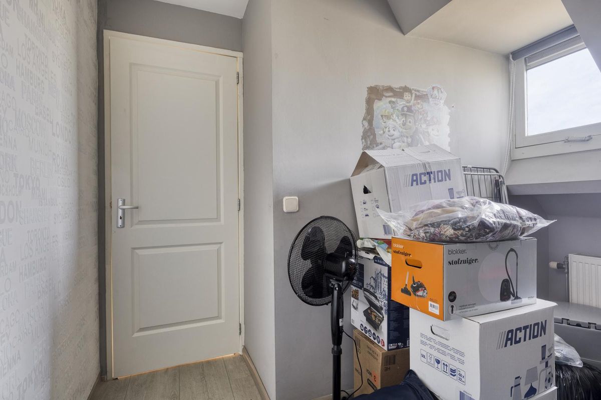 Slaapkamer II: Gelegen aan de voorzijde voorzien van een dakraam, houtlook vloer en lichte wanden. Geschikt als extra opbergruimte of compacte werkplek.