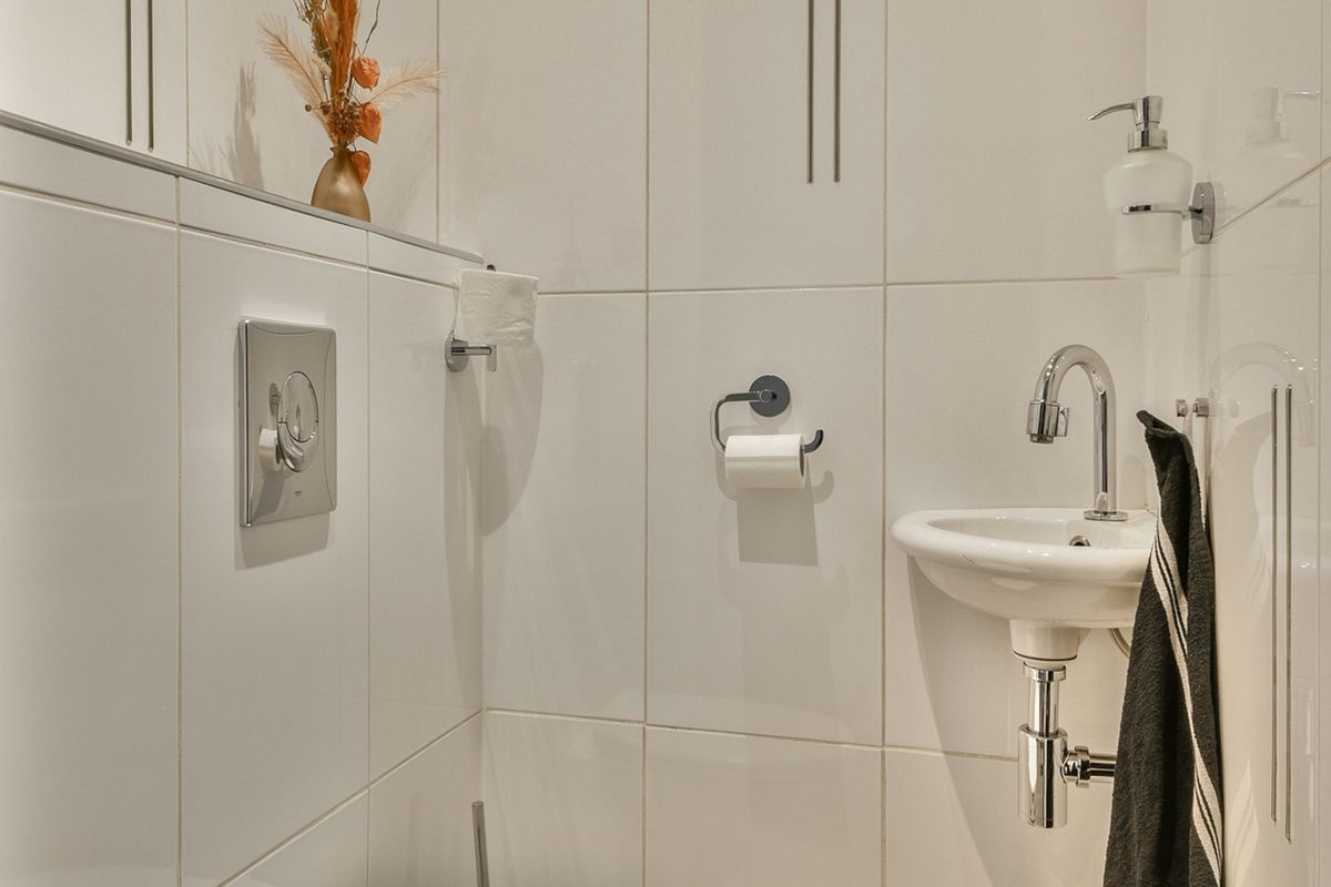 Bij binnenkomst in deze fijne woning word je direct welkom geheten in de ruime hal met de meterkast, garderoberuimte, trapopgang naar de eerste verdieping en een modern toilet met stijlvolle afwerking. Hier proef je meteen de verzorgde uitstraling die door de hele woning is doorgevoerd.