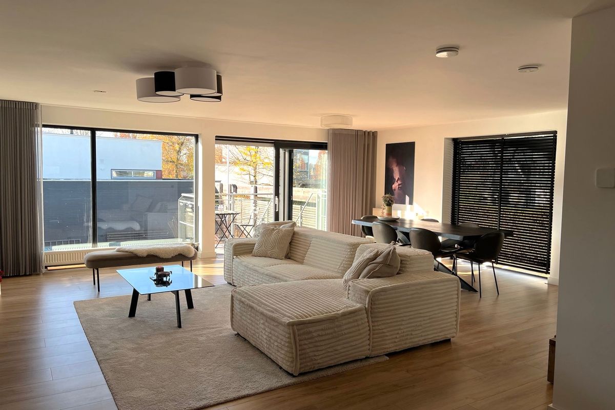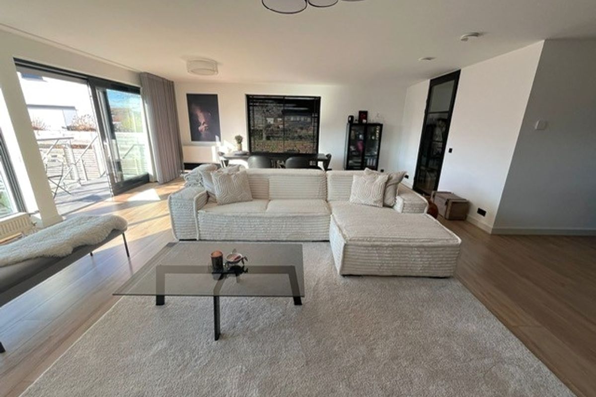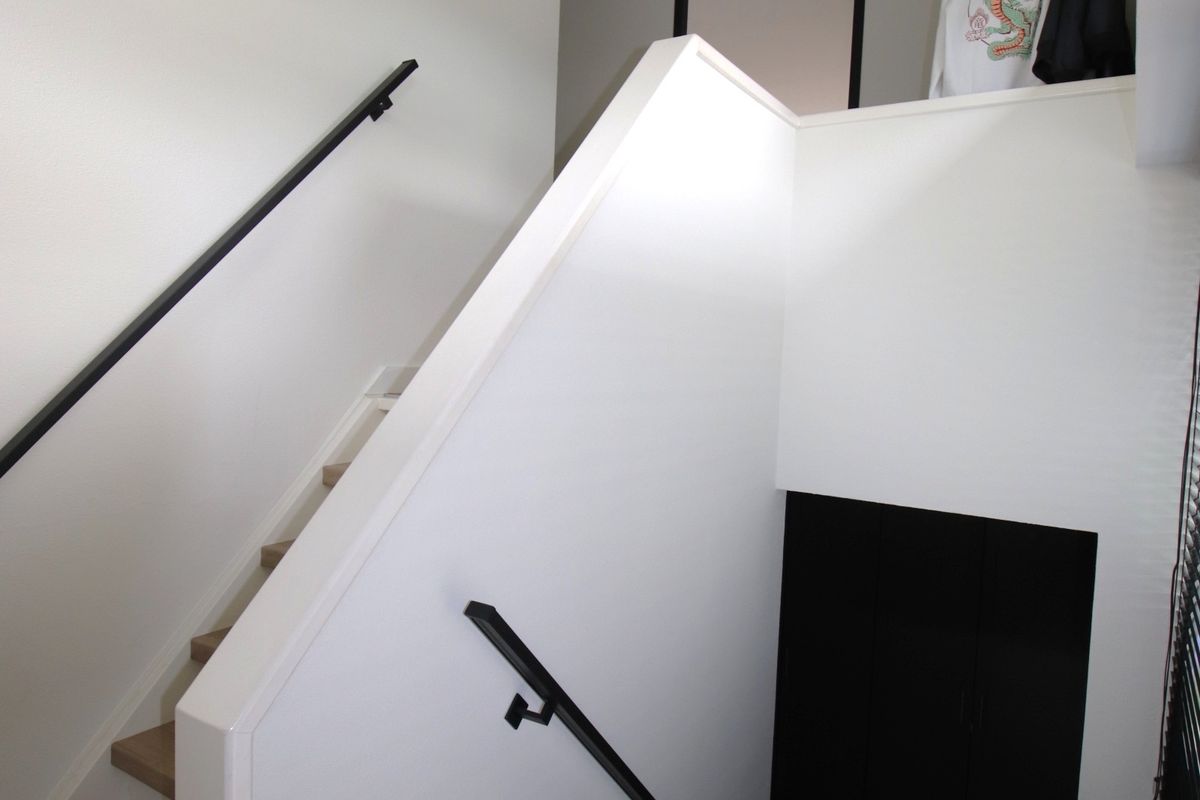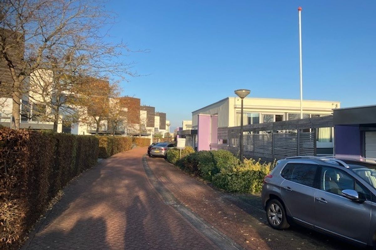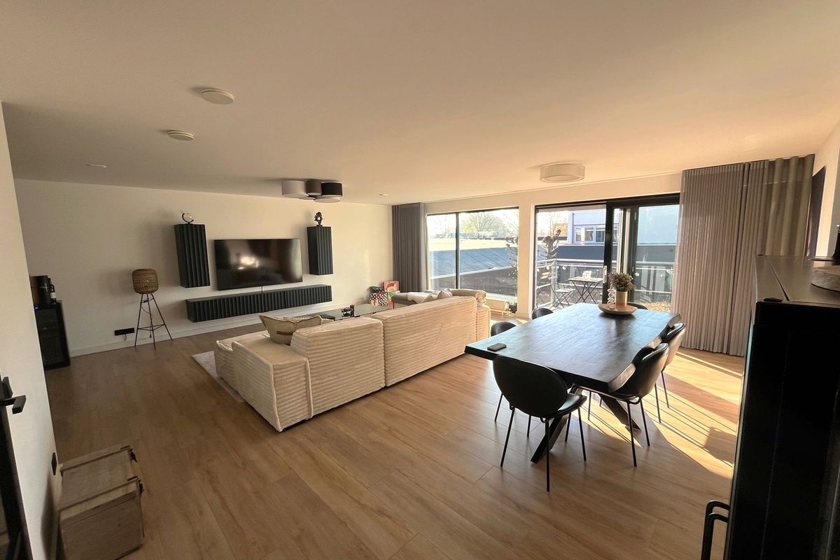 entree, centrale hal, deur naar garage, meterkast, trapopgang, 2e hal met 2e modern toilet met fonteintje, garderobe, royale L-vormige woonkamer met schuifpui, open nieuwe keuken (2012) met keukeneiland en inbouwapparatuur o.a. koffiezetapparaat en 2 ovens, cv-/bergkast, balkon, trapneergang naar beschutte moderne nieuw (2023) aangelegde binnentuin voorzien van automatische verlichting en elektrisch bedienbare zonwering, vrij achterom, geïsoleerde garage met elektrische bedienbare geïsoleerde deur, uitstortgootsteen, waterontharder en kleine patio.