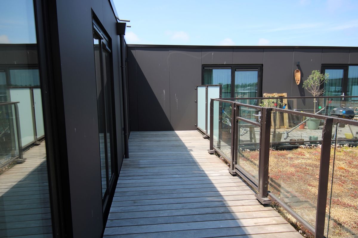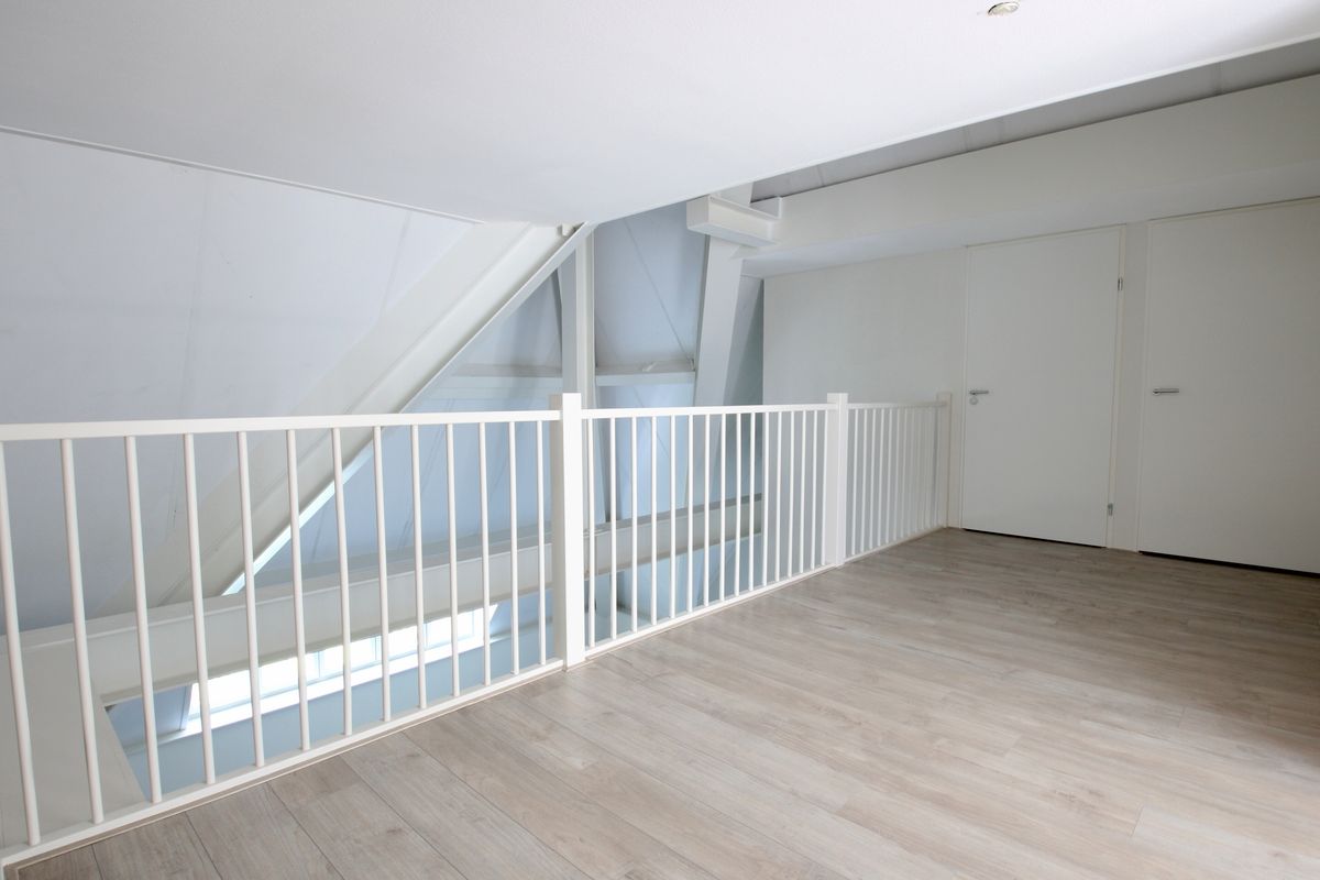Sleeping floor: landing/loft with a view of the living room. storage room, bathroom with spacious sink, toilet and walk-in shower. Corridor that gives access to 2 bedrooms and the master bedroom, again with exposed beams. Both from the hallway and each bedroom there is access to one of the two roof terraces with a view over Haarlem, so that you can enjoy your cup of coffee on one terrace in the morning and diner on the other terrace in the evening.