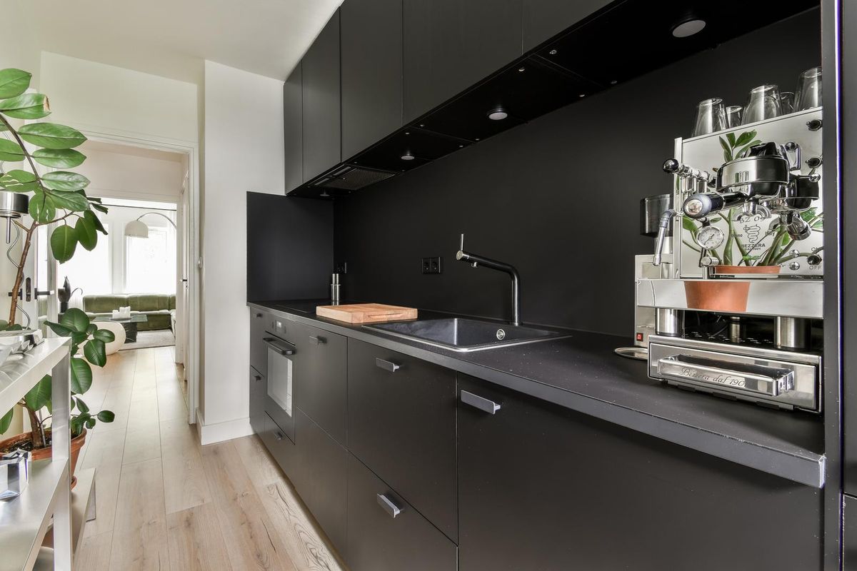 Entree op eerste etage; hal met veel ruimte voor garderobekast, fijne lichte woonkamer aan de straatzijde, badkamer met inloopdouche en wastafel, separaat toilet, strakke zwarte keuken aan achterzijde voorzien van inbouwapparatuur waaronder ingebouwde wasmachine, slaapkamer eveneens aan achterzijde met openslaande deuren naar het balkon. De CV-ketel bevindt zich in een geïsoleerde kast op het balkon.