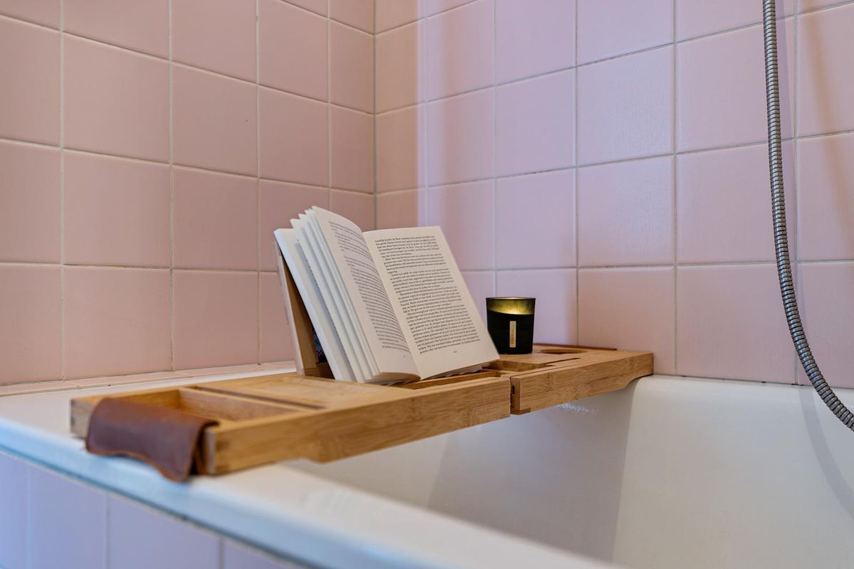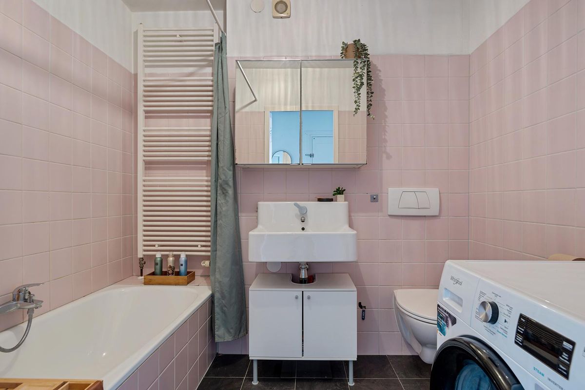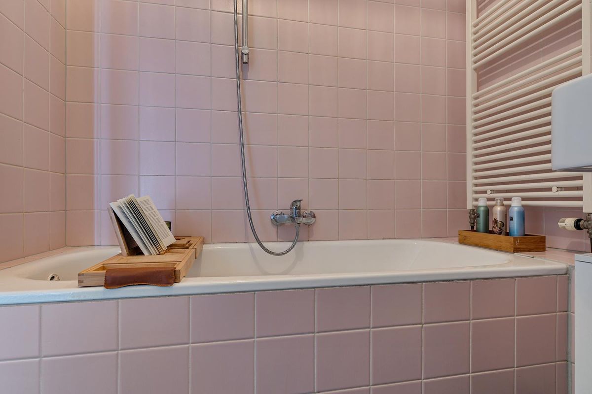 De badkamer is bereikbaar vanuit de hal en is opvallend ruim voor een woning van dit formaat. Er is een ligbad, wastafel, toilet en een aansluiting voor de wasmachine. Alles is verzorgd, praktisch ingericht en goed onderhouden.