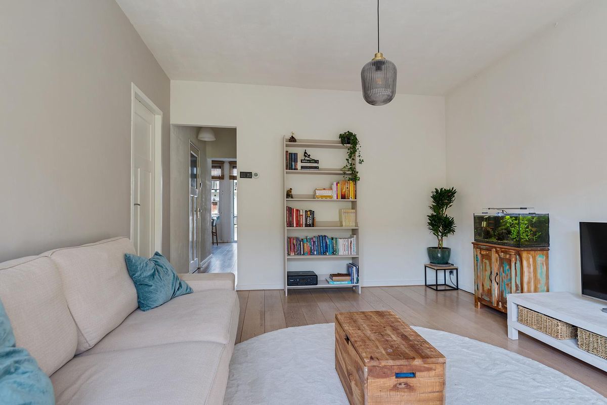 Eenmaal binnen laat de woning zich van zijn beste kant zien: een lichte woonkamer aan de straatzijde met grote raampartijen en een logische, rechte indeling zonder onhandige hoeken of verloren ruimte. Grenzend aan deze woonkamer ligt een tweede kamer, uitstekend geschikt als werkkamer, kinderkamer of logeerruimte. Samen vormen deze kamers het hart van de woning met een fijne, open sfeer.