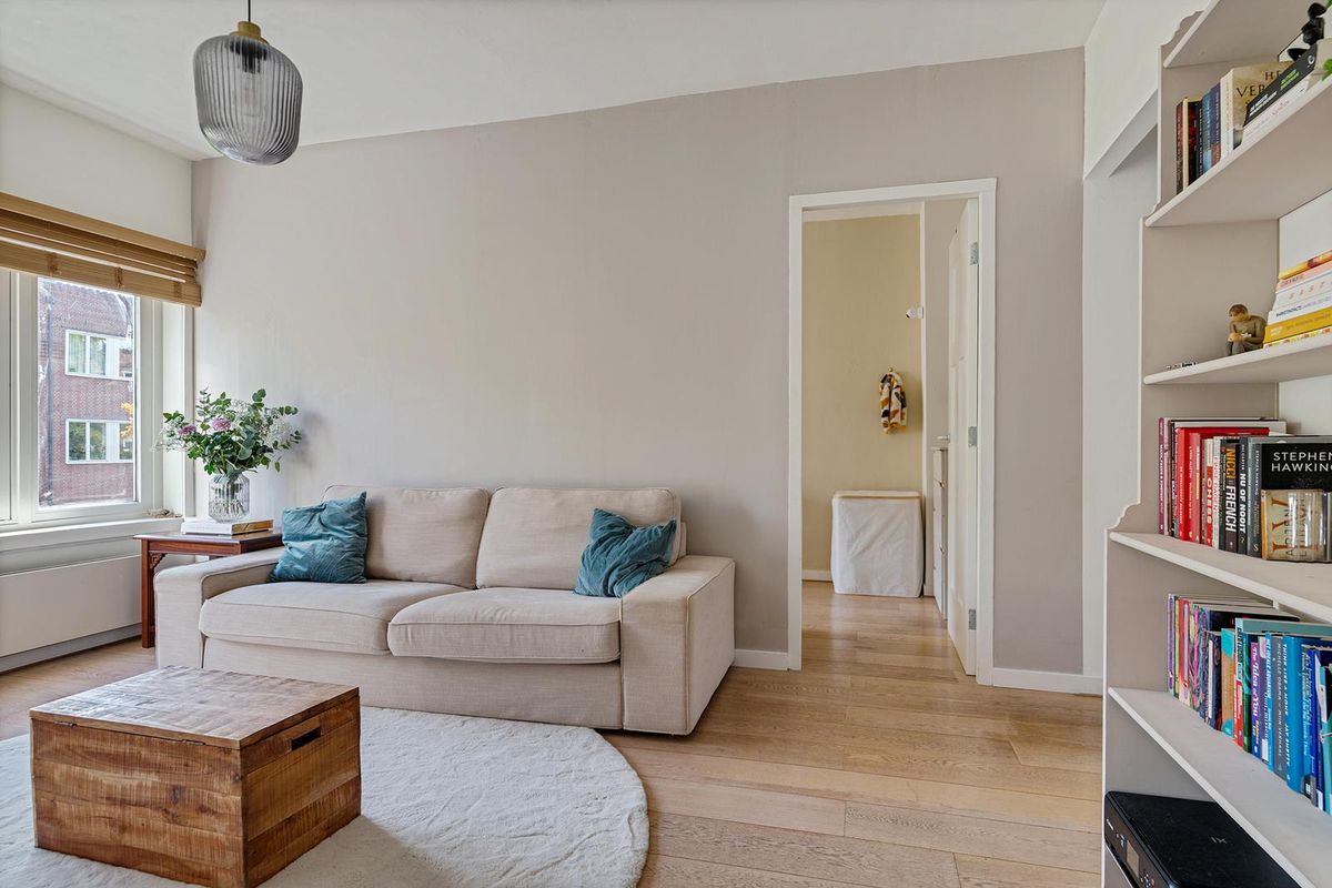 Inside, the apartment shows itself at its best: a bright living room on the street side with large windows and a straightforward layout without awkward corners or wasted space. Adjacent to the living room is a second room, ideal as a study, child’s room, or guest space. Together, these rooms form the heart of the home with a pleasant, open atmosphere.