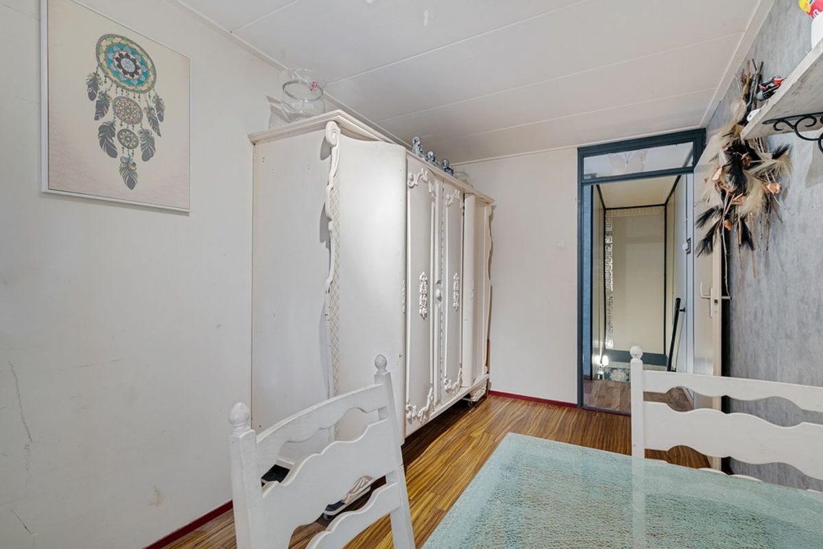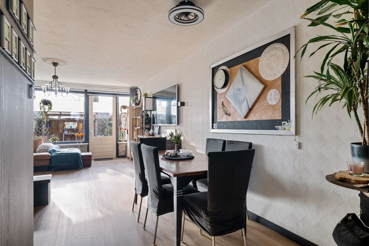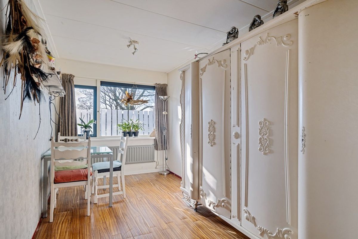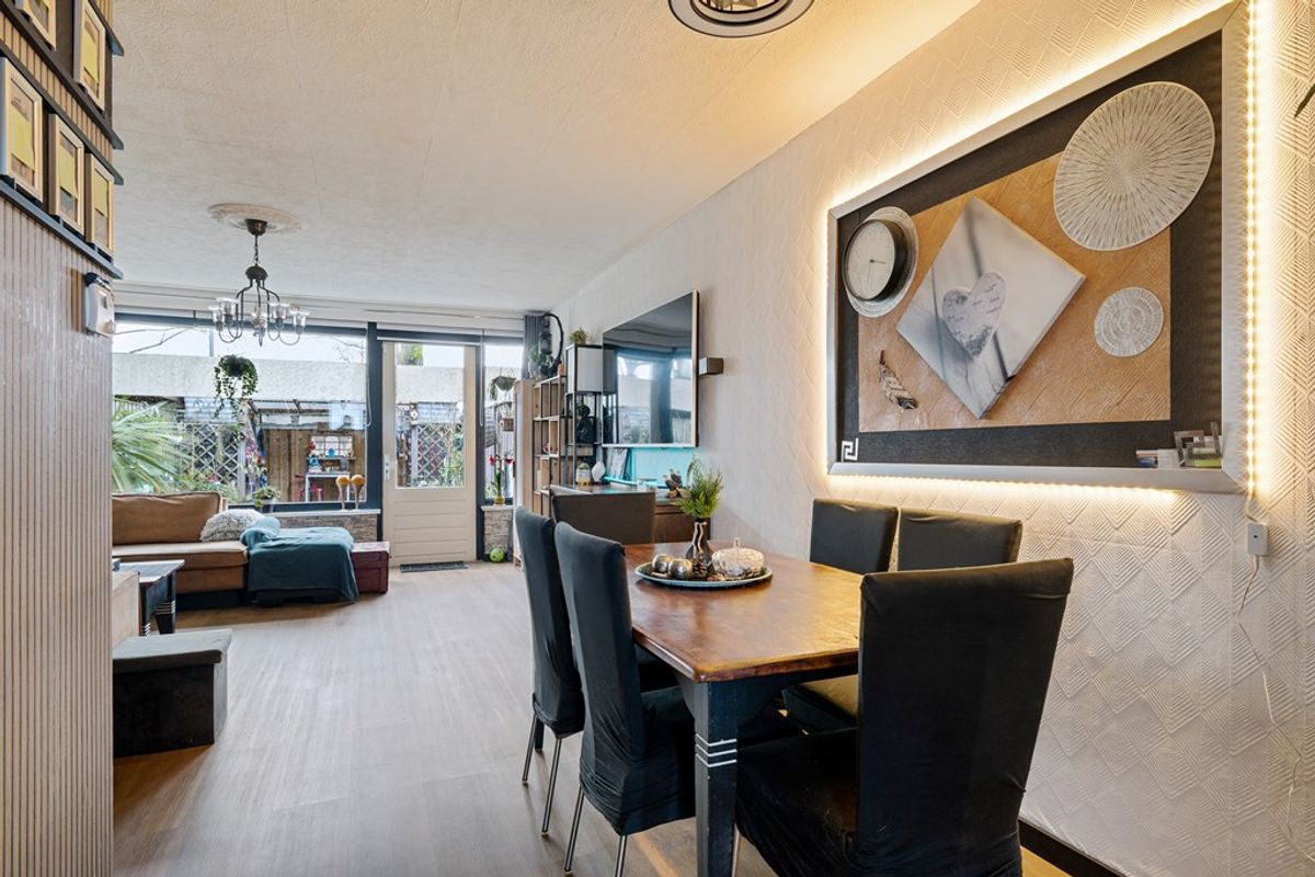 Loop je door, dan bereik je de woonkamer. Deze ruimte is ruim opgezet en voorzien van een laminaatvloer, met volop plek voor een zithoek en een eethoek. Dankzij de raampartijen aan de voorzijde en achterzijde valt er veel daglicht naar binnen en kijk je prettig uit op de tuin. Aan de achterzijde bevindt zich een deur naar de achtertuin, waardoor binnen en buiten mooi in elkaar overlopen.