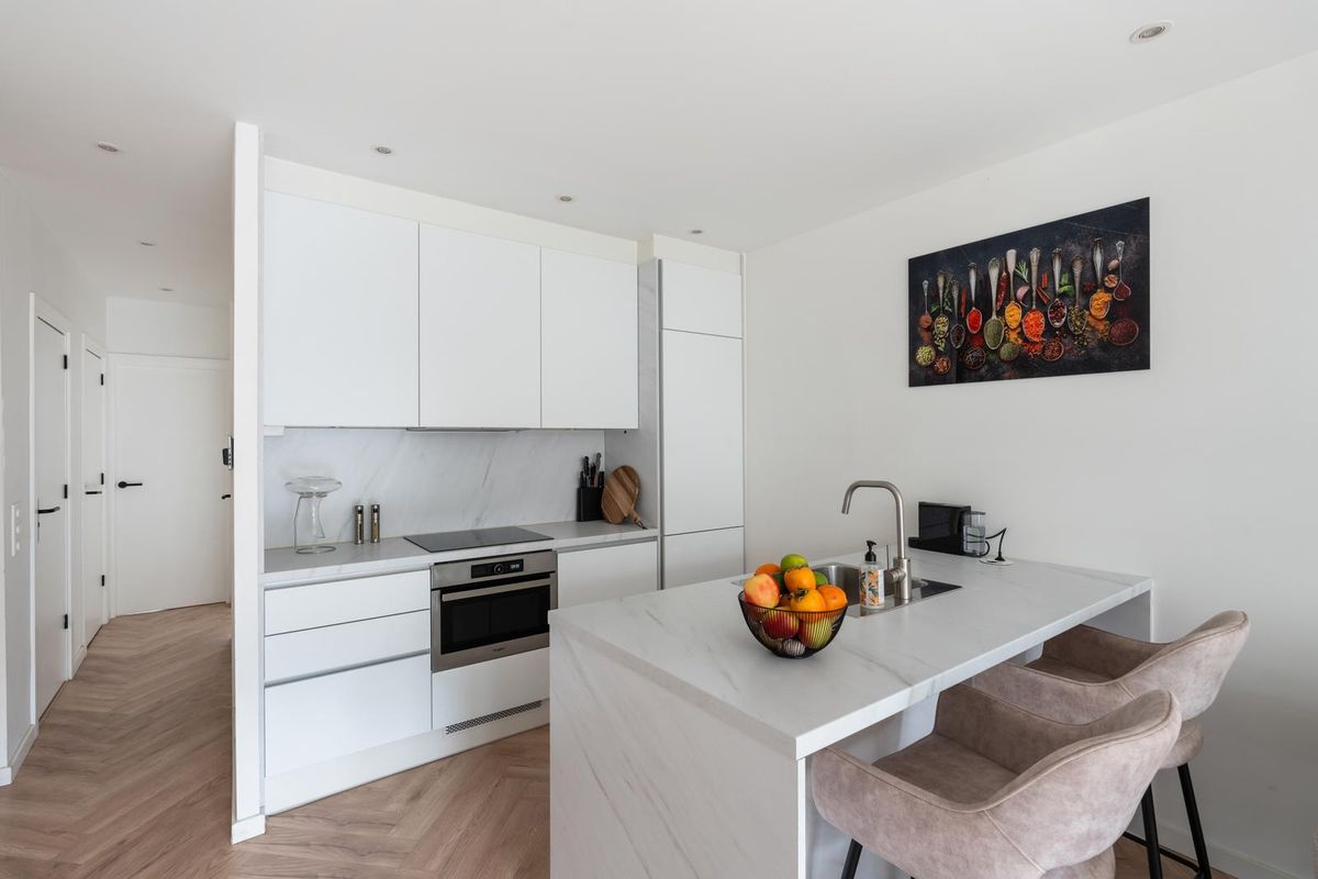 Entree met ruime overloop (separaat toilet en vaste kast) toegang tot alle vertrekken. De ruime woonkamer met open keuken is gelegen aan de voorzijde. Door de grote raampartij aan de voorzijde treedt er veel natuurlijk licht de woning binnen. Er is meer dan genoeg ruimte om een mooie zithoek te creëren. De open keuken beschikt over diverse inbouwapparatuur zoals een 4-pits elektrische kookplaat met afzuigkap, koel-/vriescombinatie, oven, vaatwasser en een spoeleiland. Via de gang zijn beide slaapkamers te bereiken. De "master bedroom" is gelegen aan de achterzijde en is erg ruim te noemen. De kamer biedt voldoende ruimte voor een royaal bed en een kast. Daarnaast ligt de tweede slaapkamer. Deze kamer is goed te gebruiken als kasten kamer of home office. Tevens biedt deze kamer toegang tot het ruime terras waar heerlijk van de ochtendzon genoten kan worden. Hier kun je op warme zomeravonden heerlijk genieten en lang tafelen met gezelschap. De volledig betegelde badkamer beschikt over een inloop(regen)douche, design handdoekradiator en een dubbelewastafel met meubel.