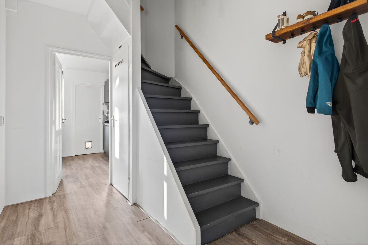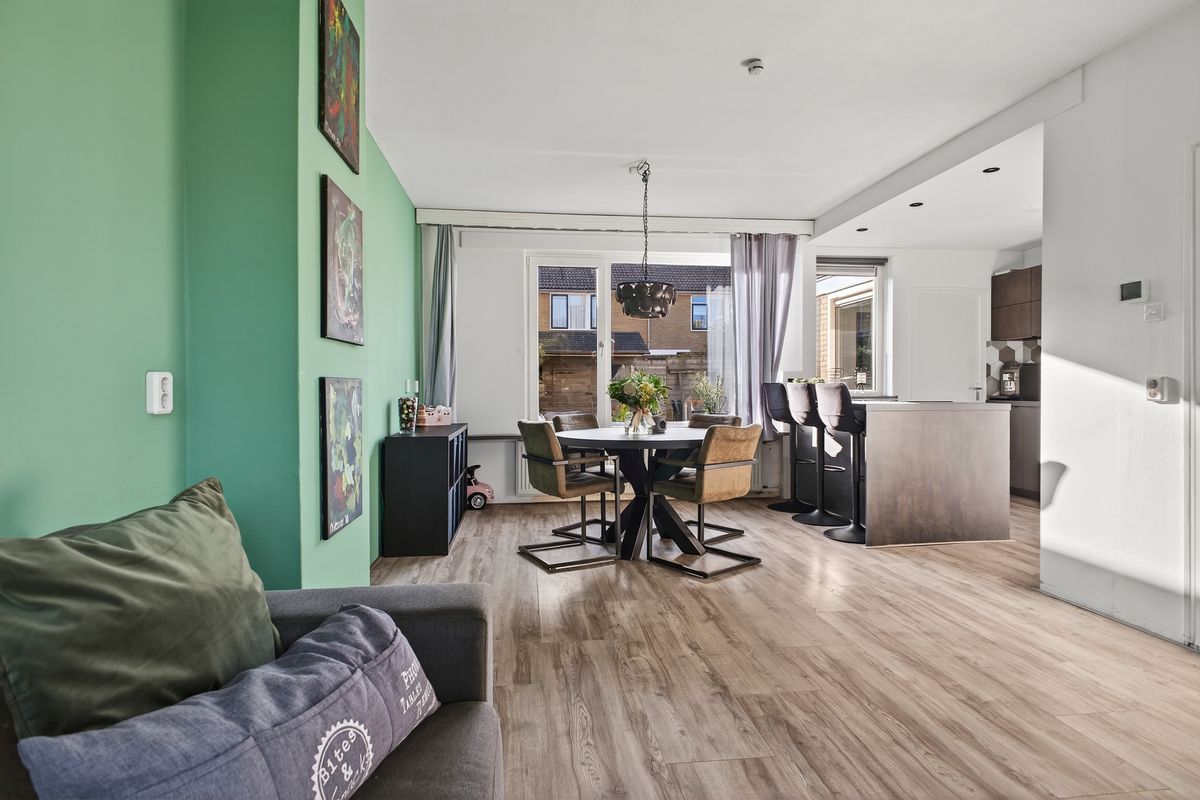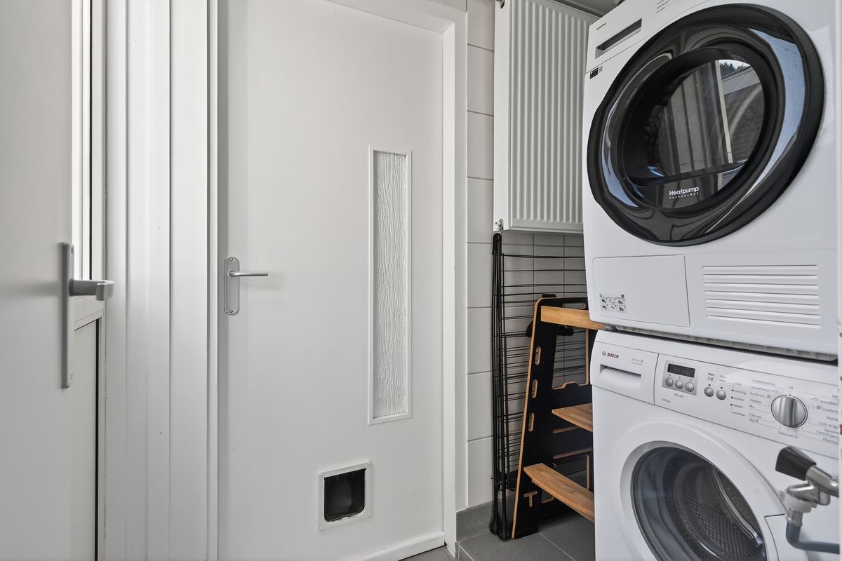 Je komt via het tochtportaal binnen in de hal waar ook direct het toilet zich bevindt en de trap naar boven. Via de hal heb je toegang tot de woonkamer en tot de keuken die aan de achterzijde van de woning ligt. De lichte woonkamer heeft een prettige doorzonindeling en biedt ruimte voor een gezellige zit- en eethoek. De halfopen keuken (2022) is een echte blikvanger, voorzien van moderne fronten, een kookeiland met bar, diverse inbouwapparatuur en vloerverwarming. Vanuit de keuken bereik je de bijkeuken met witgoedaansluitingen. Aansluitend bevindt zich nog een praktische stenen berging met toegang tot de achtertuin.