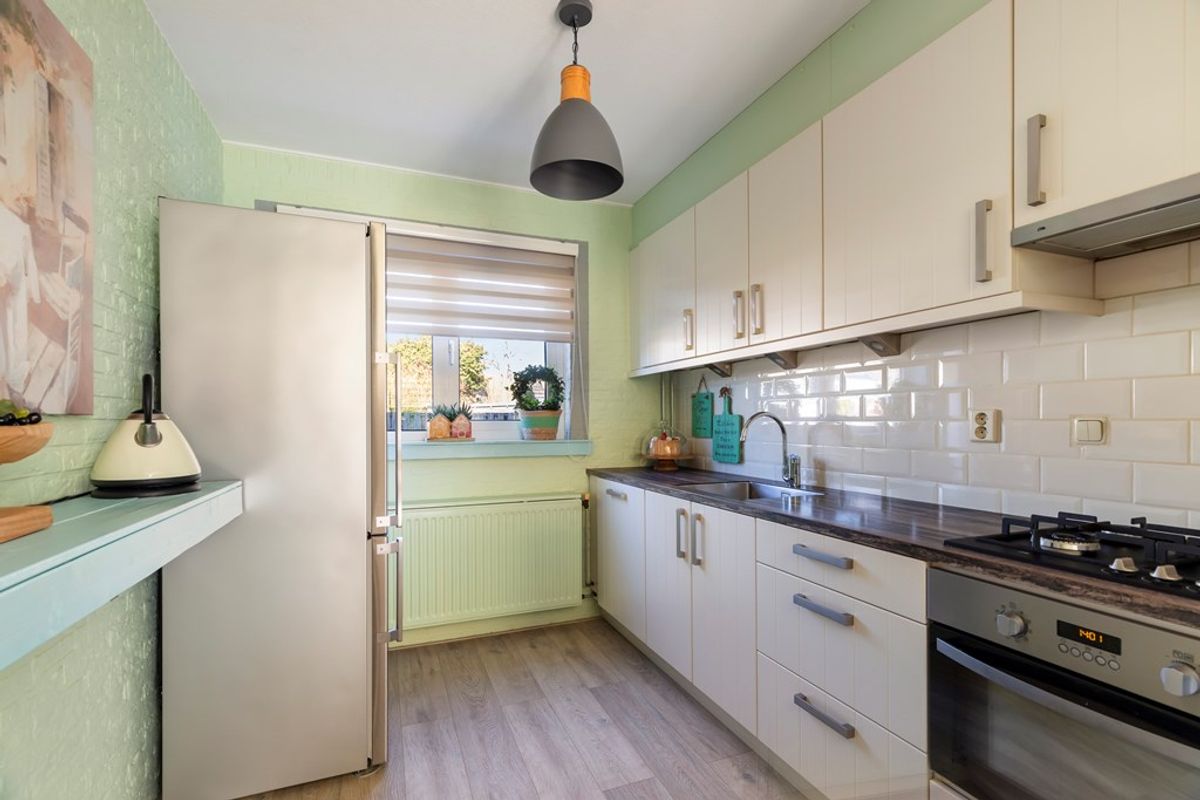 Entree/hal met meterkast, toiletruimte en trapkast. Lichte en tuingerichte woonkamer met prettig zicht op de achtertuin. De open keuken is voorzien van diverse inbouwapparatuur, waaronder een kookplaat (2022) en vaatwasser (2023).
