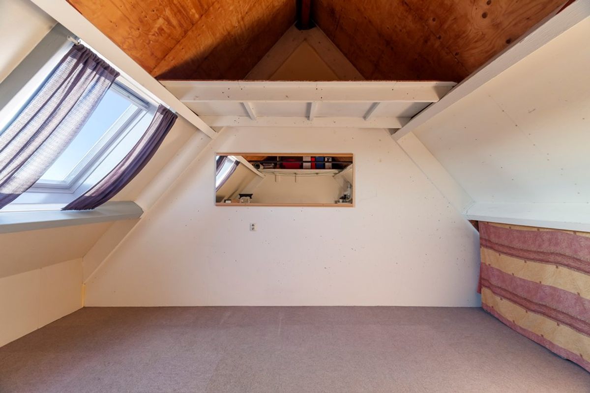 Via een vaste trap bereikbare ruime open zolder met dakramen, opstelplaats voor wasmachine en de CV-ketel (Remeha Avanta Ace 28c, 2018). Deze verdieping is multifunctioneel en eenvoudig in te richten als extra slaapkamer.
