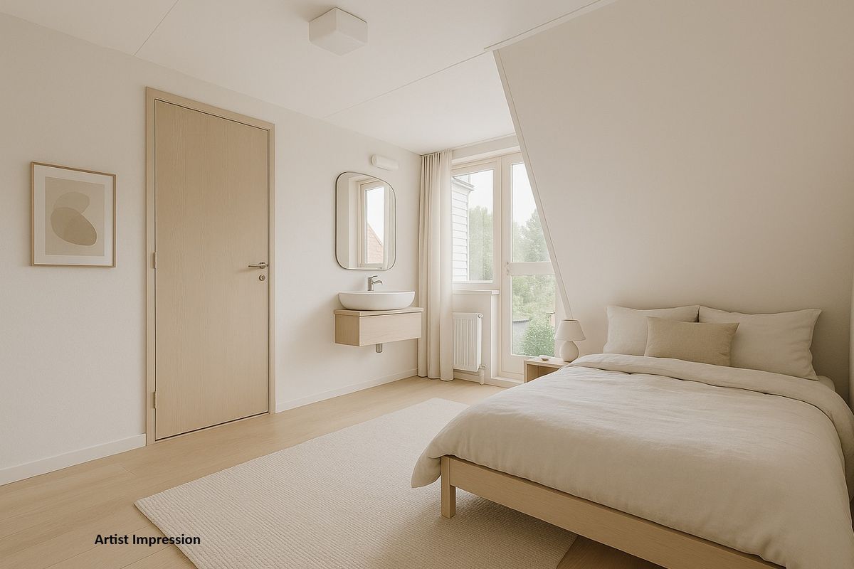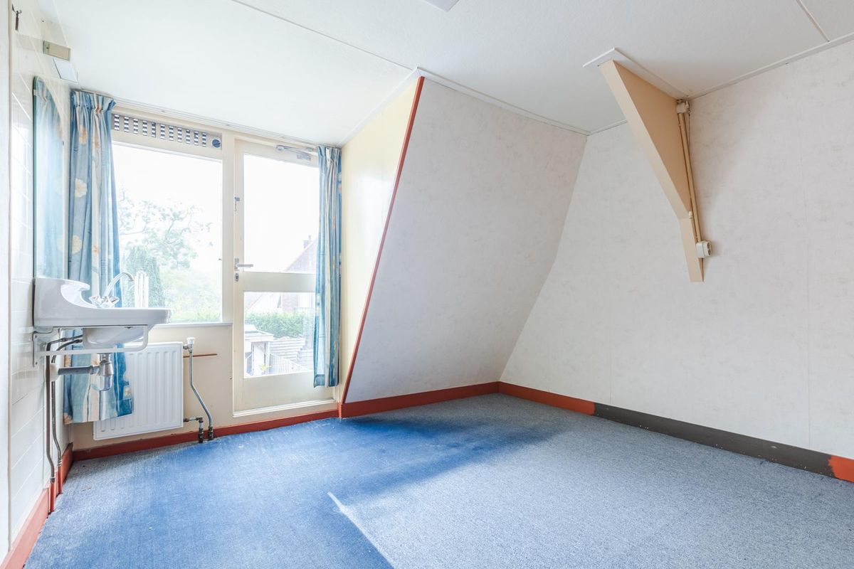 Overloop met veel kastruimte en toegang tot drie slaapkamers, waarvan twee aan de voorzijde met tevens met uitzicht op de Zuidertoren en één aan de achterzijde. De kamers bieden een fijne basis om te moderniseren en comfortabel in te delen. De slaapkamer aan de achterzijde is voorzien van een wastafel en heeft een deur naar het platte dak.