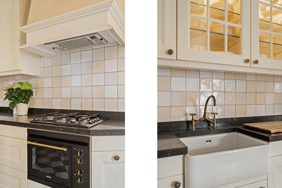 Overloop met toegang tot drie ruime slaapkamers. Eén van de kamers beschikt over een overdekt balkon – een heerlijke plek om buiten te zitten met een kop koffie of een boek. De moderne badkamer is compleet uitgevoerd met ligbad, aparte douche en een wastafelmeubel.