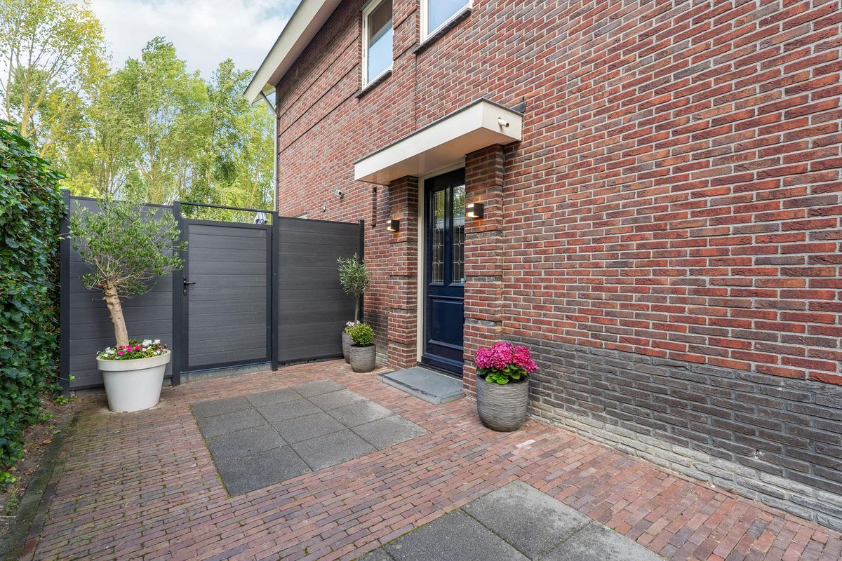 De tuin is met zorg aangelegd en biedt verschillende zitplekken, veel privacy en een houten tuinhuis met berging. Dankzij de ligging aan de bosrand ervaar je hier rust, natuur en ruimte. Een zeldzame combinatie binnen de stad.